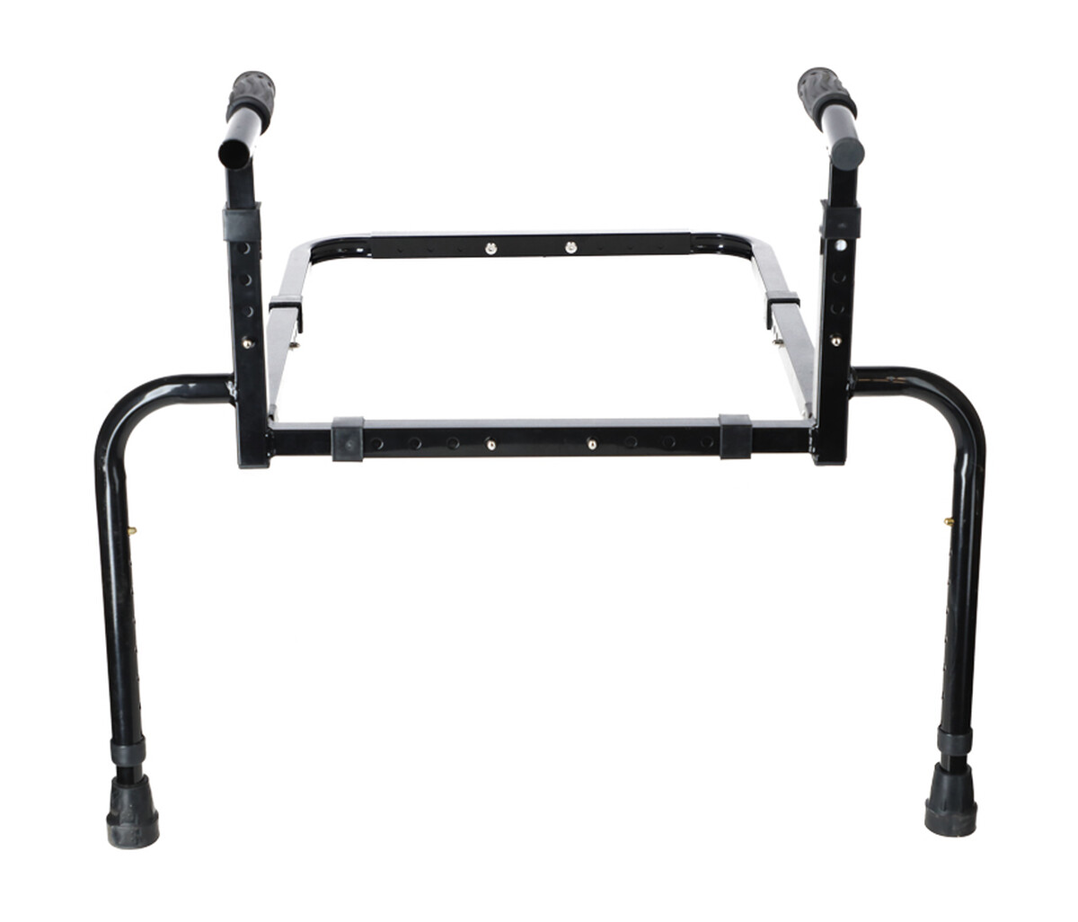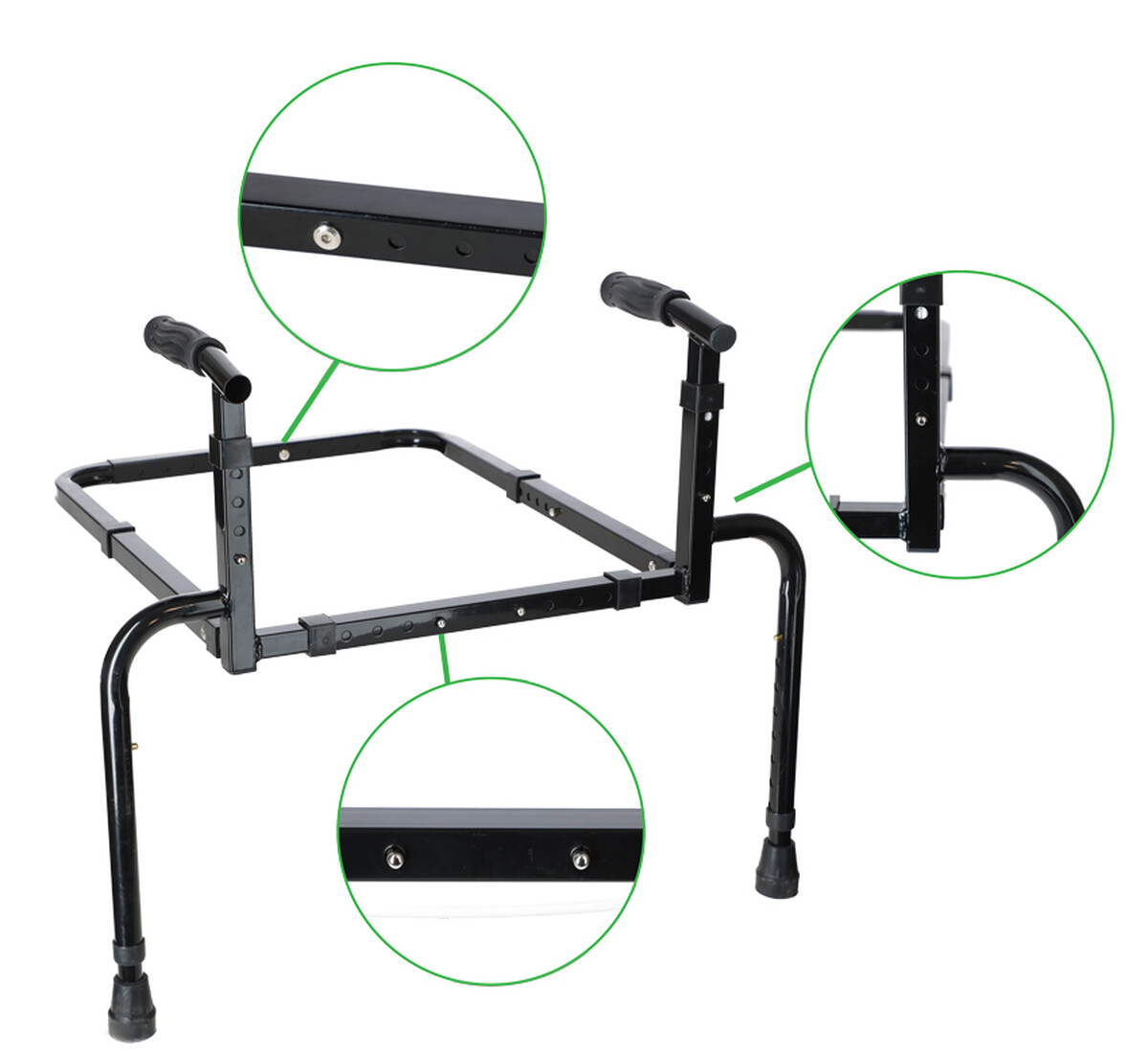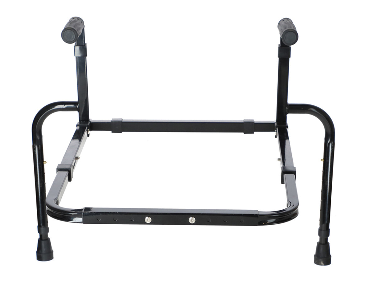 Bezpečnosť pri používaní zaistia protišmykové ergonomické rukoväte s TPR povrchom a gumové nadstavce na nožičkách, vďaka ktorým madlo ostáva na mieste aj po plnom prenesení váhy na rám.