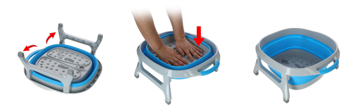 Kompaktný skladací dizajn umožňuje využívať akupresúrnu vaničku kdekoľvek. Nezaberá veľa miesta, ľahko sa používa aj prenáša. Stačí ju naplniť vodou, pridať obľúbené esenciálne oleje, prípadne soľ či inú kozmetiku a užiť si príjemný relax.