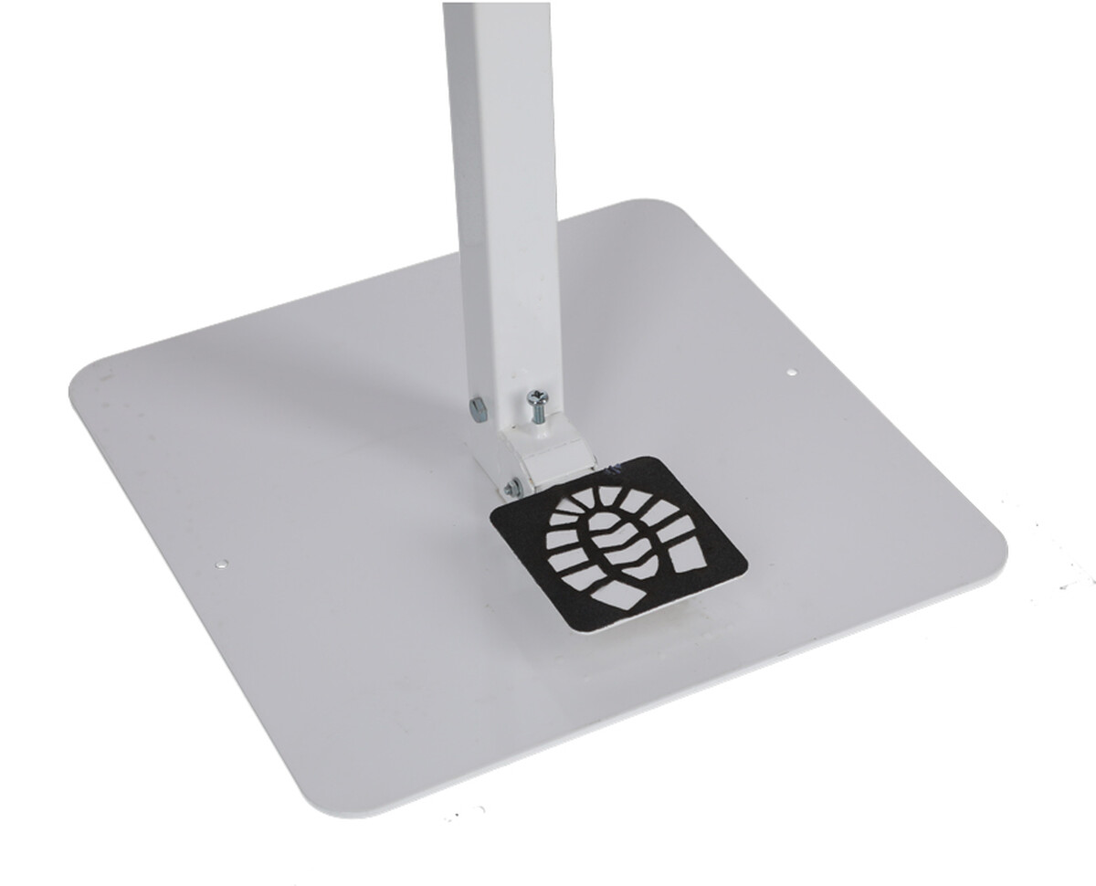 Odolná stabilná konštrukcia dezinfekčného stojana umožňuje jeho voľné umiestnenie v priestore. Predvŕtané diery na podstavci poskytujú tiež možnosť fixného pripevnenia k zemi. Okrem základného umiestnenia dezinfekcie teda pomáha tiež predchádzať prevrhnutiu či krádeži.