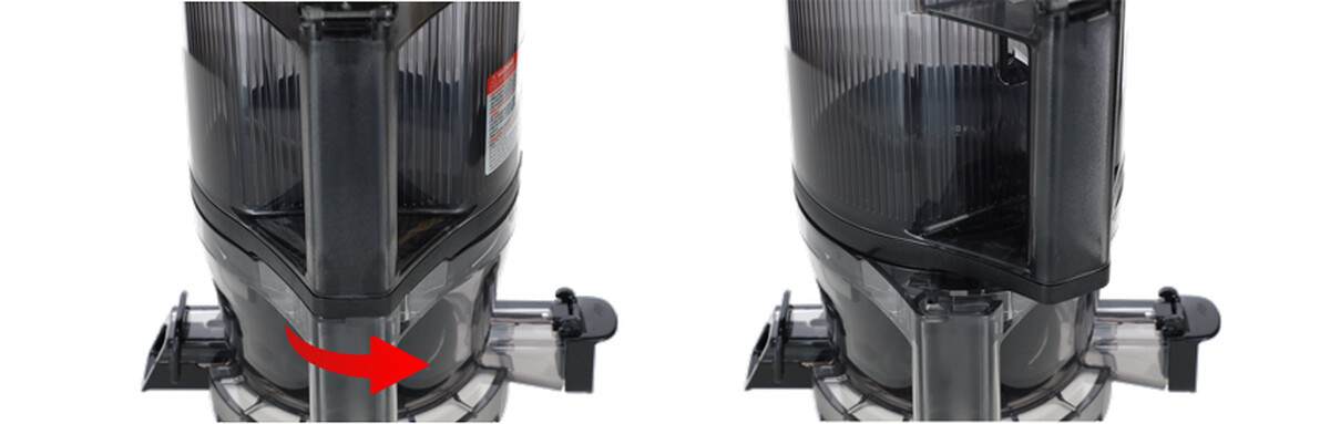 Prístroj sa montuje a demontuje jednoduchým intuitívnym spôsobom. Kryt zásobníka je možné bezpečné otvoriť a zatvoriť kedykoľvek v priebehu odšťavovania – po jeho otvorení sa prevádzka odšťavovača automaticky zastaví a po zatvorení sa proces odšťavovania opäť obnoví. Okrem toho sa na veku nachádza malý otvor, cez ktorý môžete pridávať ďalšie suroviny aj počas chodu motora bez nutnosti otvárania.