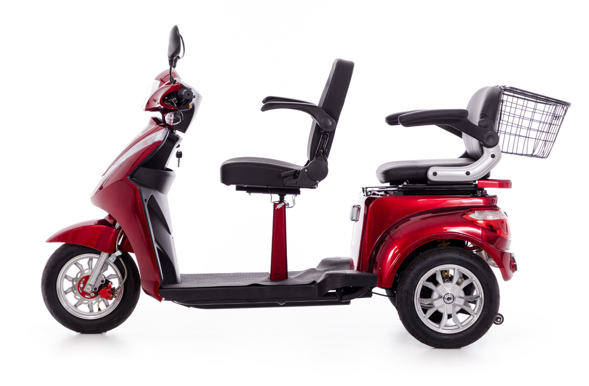 Luxusný dvojmiestny skúter najvyššej triedy určený pre seniorov, imobilných pacientov či osoby so zníženou pohybovou schopnosťou. Vhodný pre seniorské páry, aj na dlhšie trasy a rôzne terény, poskytuje maximálny komfort a bezpečnosť počas jazdy.