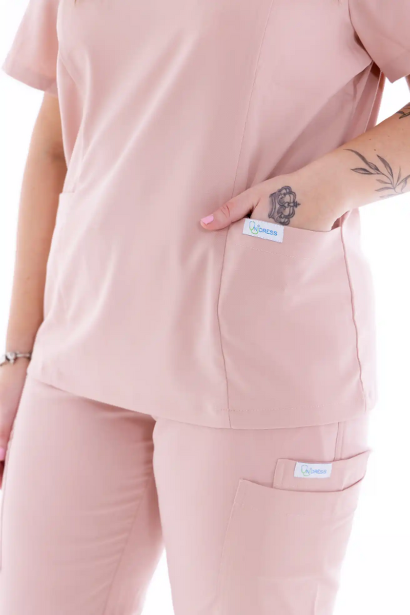 Dámska zdravotnícka blúzka Unidress Basic v púdrovej farbe bola navrhnutá s ohľadom na funkčnosť a nadčasovosť. Je ideálnou voľbou pre pracovníčky všetkých zdravotníckych profesií vrátane lekárok, sestričiek, fyzioterapeutiek, opatrovateliek, medičiek či laborantiek.