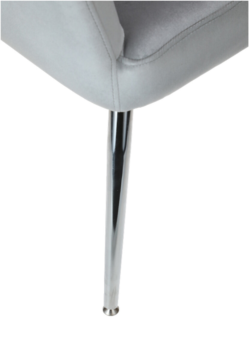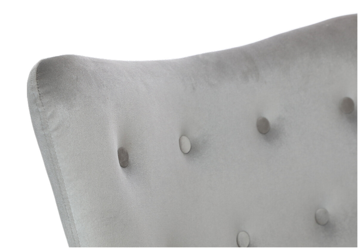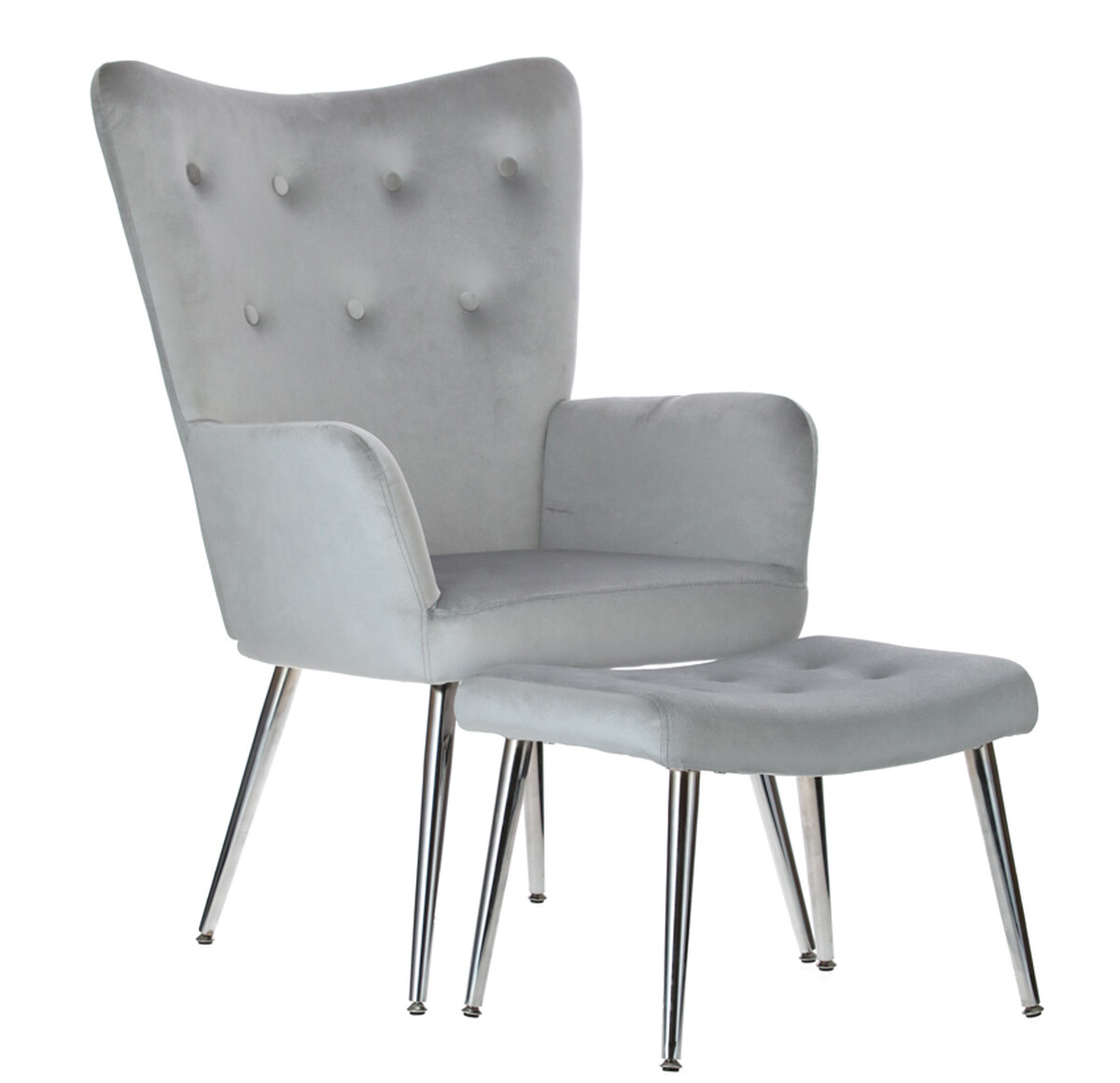 Doplňte svoj interiér atraktívnym relaxačným kreslom s podnožkou, ktoré bolo dizajnované do moderného elegantného štýlu. Spracovanie z hebkého zamatového poťahu v svetlosivej farbe s jemným leskom je dokombinované štíhlymi striebornými nožičkami, ktoré odľahčujú celkový vzhľad kresla.
