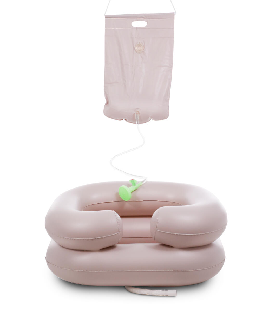 Gumené umývadlo je vďaka nafukovaciemu vankúšiku veľmi pohodlné a chráni ramená pred zbytočným omočením. Nafukovanie a vyfukovanie umývadla sa vykonáva jednoducho pomocou ventilu.