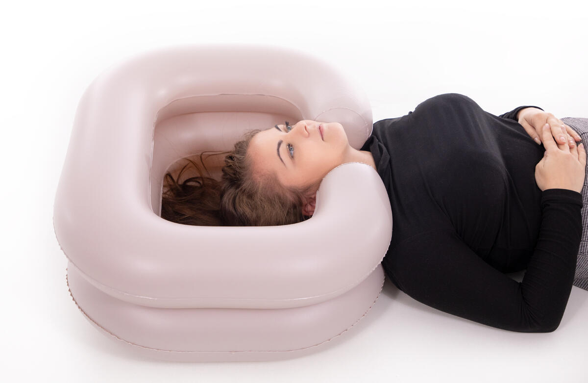 Gumené umývadlo na vlasy pre pacientov pripútaných na lôžko.