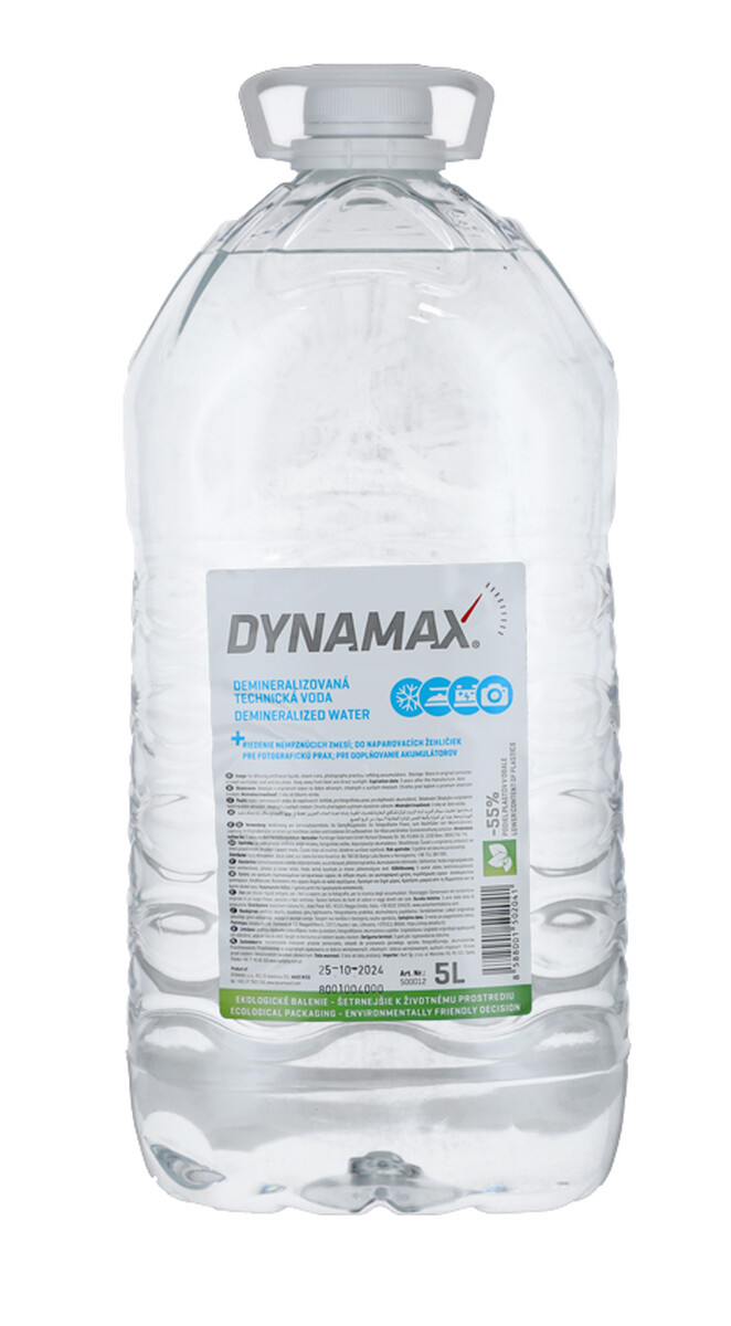 Destilovaná voda Dynamax je vhodná na použitie do kyslíkových koncentrátorov, zvlhčovačov, čističiek vzduchu a ďalších prístrojov (akumulátorov, žehličiek a pod.), ktoré obsahujú komponenty citlivé na kvalitu vody.