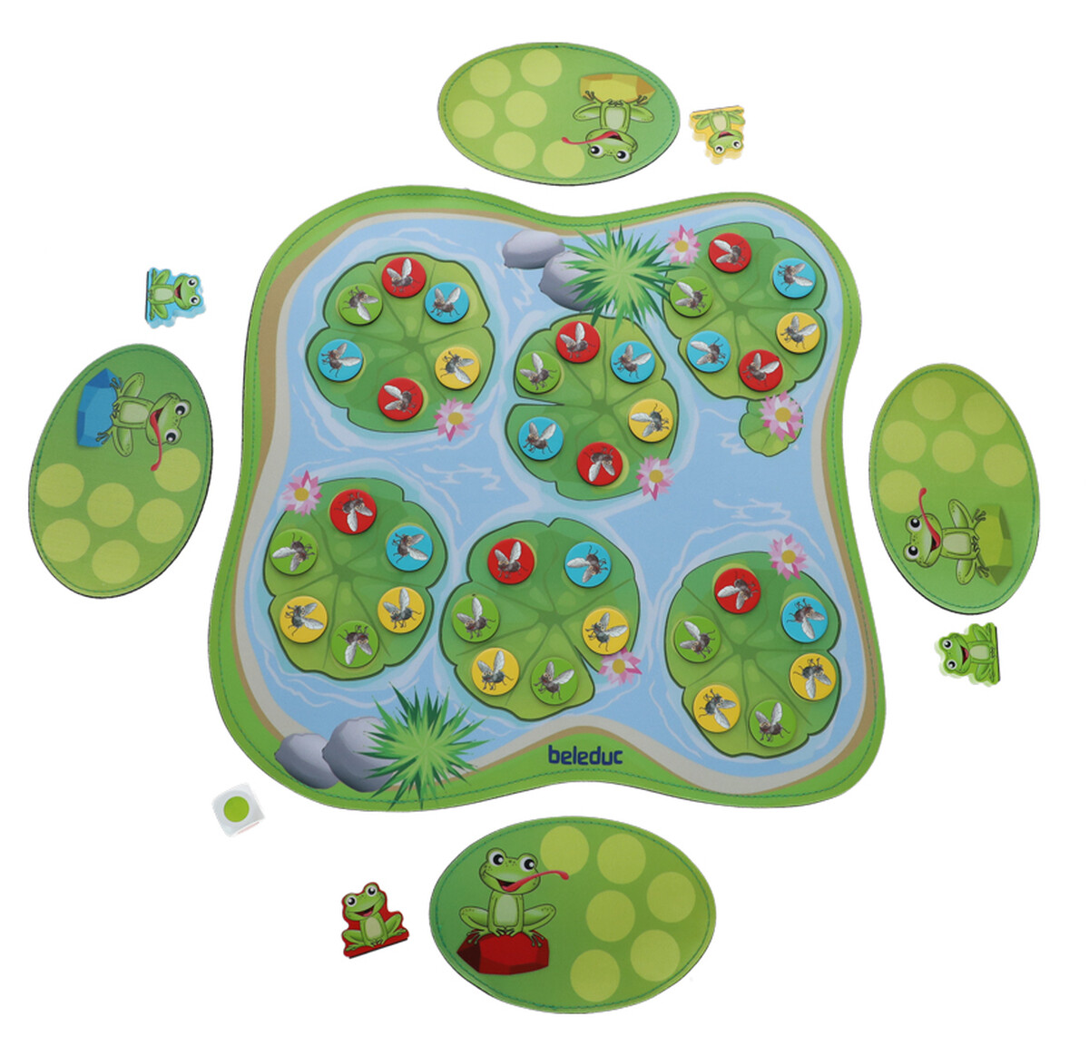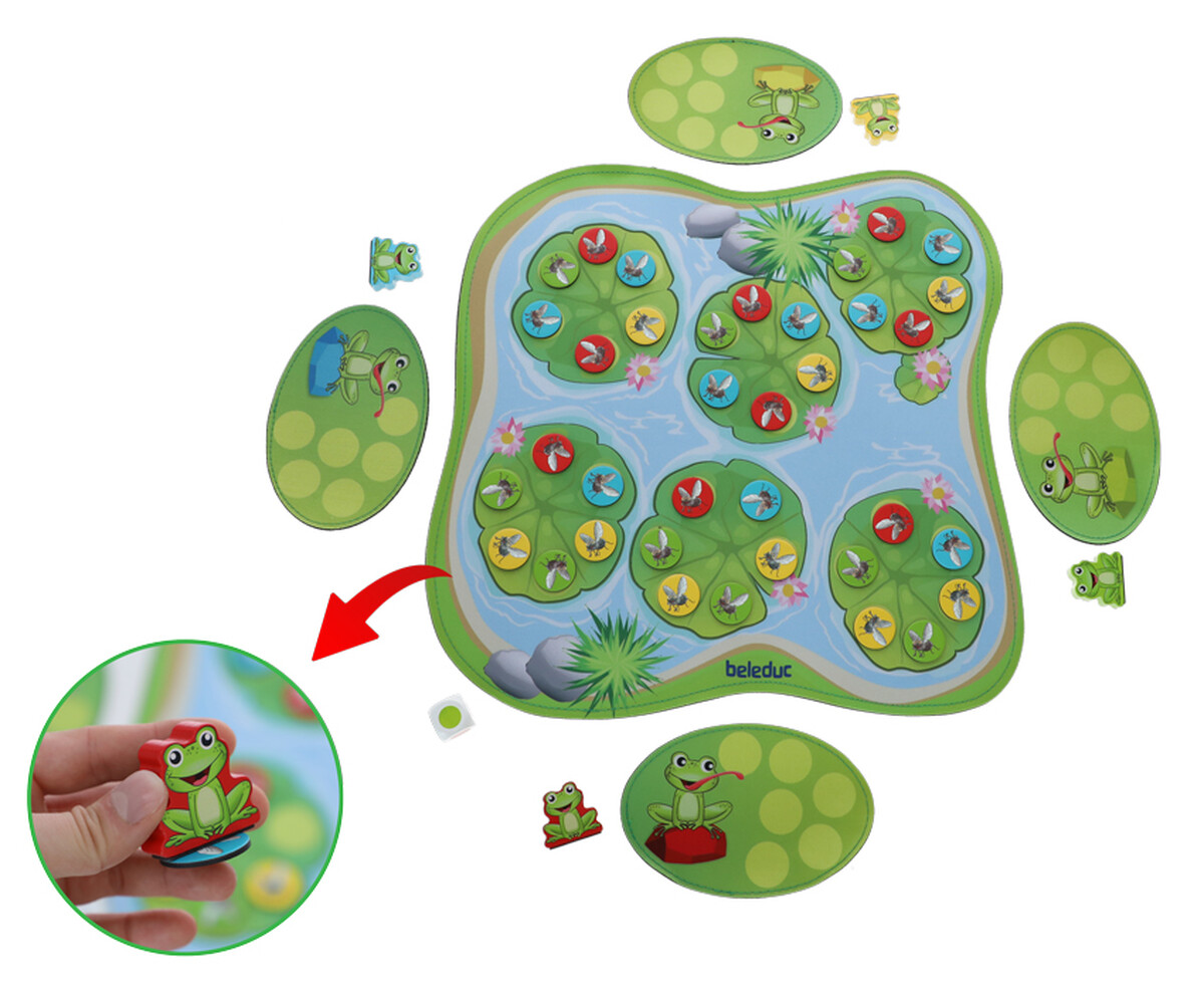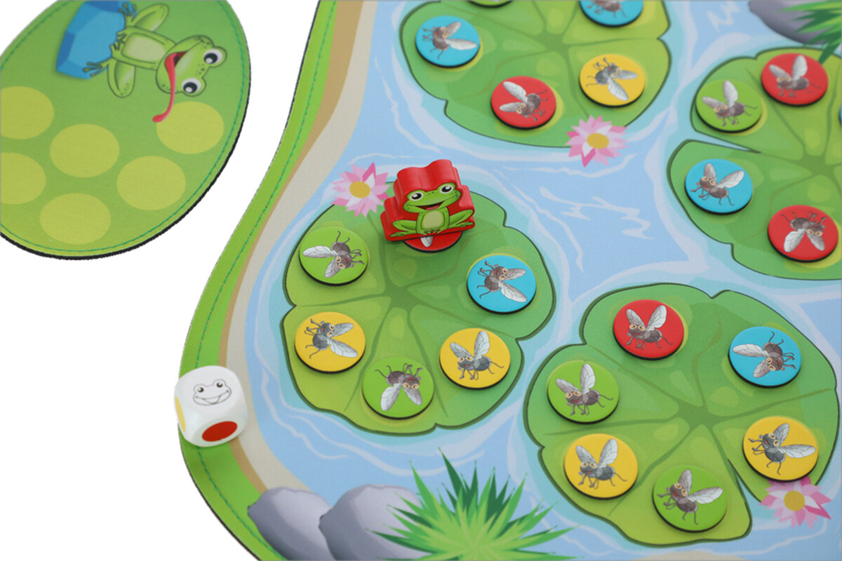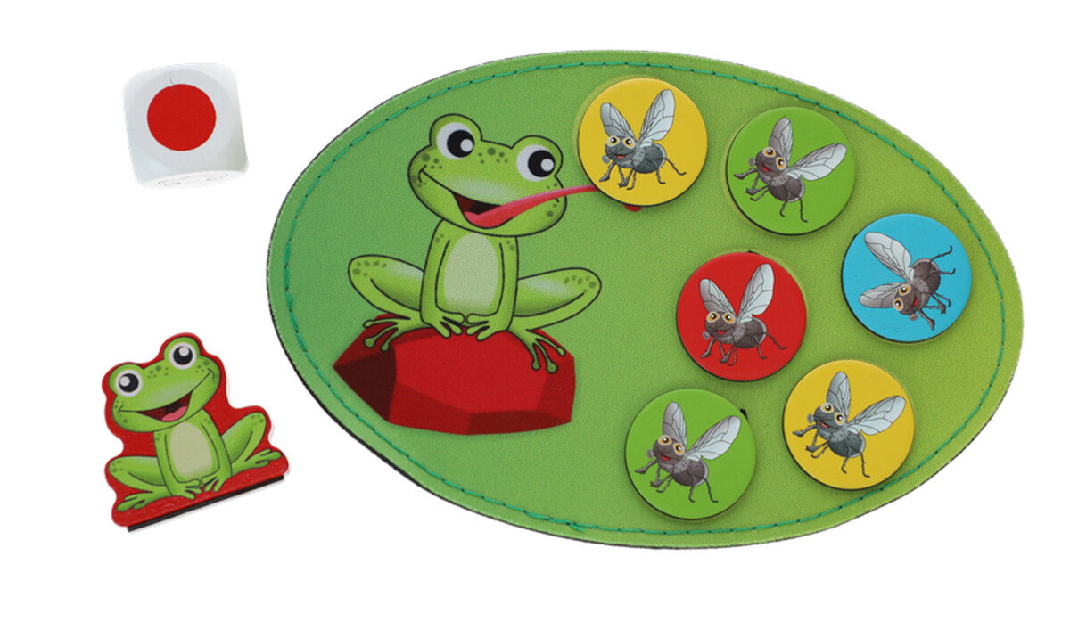 Hracia podložka predstavuje jazierko, ktoré je plné farebných mušiek. A práve tie treba pochytať. Každý hráč sa pomocou vlastnej žabky pokúša nazbierať čo najviac mušiek. Ale pozor, nie vždy sa to podarí. Žabky a vybrané mušky obsahujú magnety, vďaka čomu sa dajú vyberať. Magnet v sebe ale nemá každá muška, preto je dôležité si jej pozíciu na podložke zapamätať.