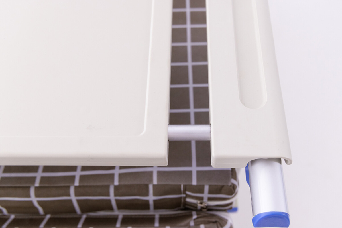 Lôžkový stolík je doplnený pružinovým systémom, ktorý umožňuje prispôsobiť šírku podnosu. Vďaka tomu môže byť použitý k rôznym typom postelí.