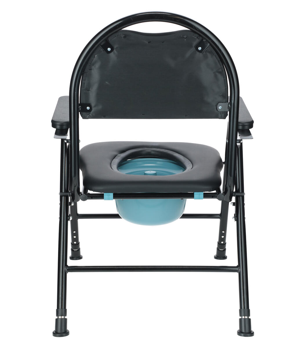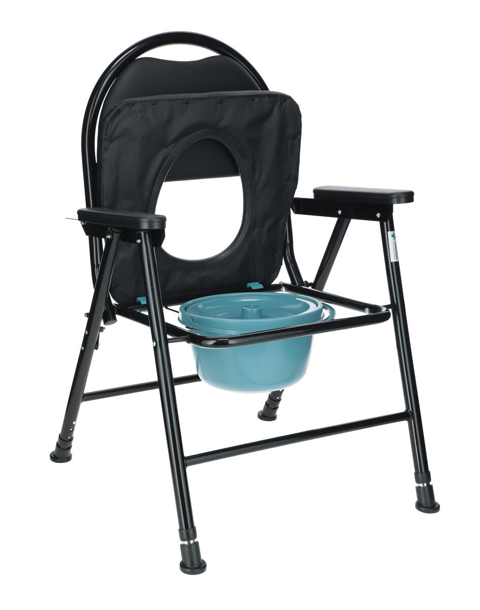 Toaletná stolička sa dá tiež jednoducho rozložiť a zložiť, a teda kompaktne skladovať. Stabilitu pri používaní zabezpečuje konštrukcia z oceľových rámov a gumené nadstavce v spodnej časti konštrukcie chránia pred pošmyknutím.