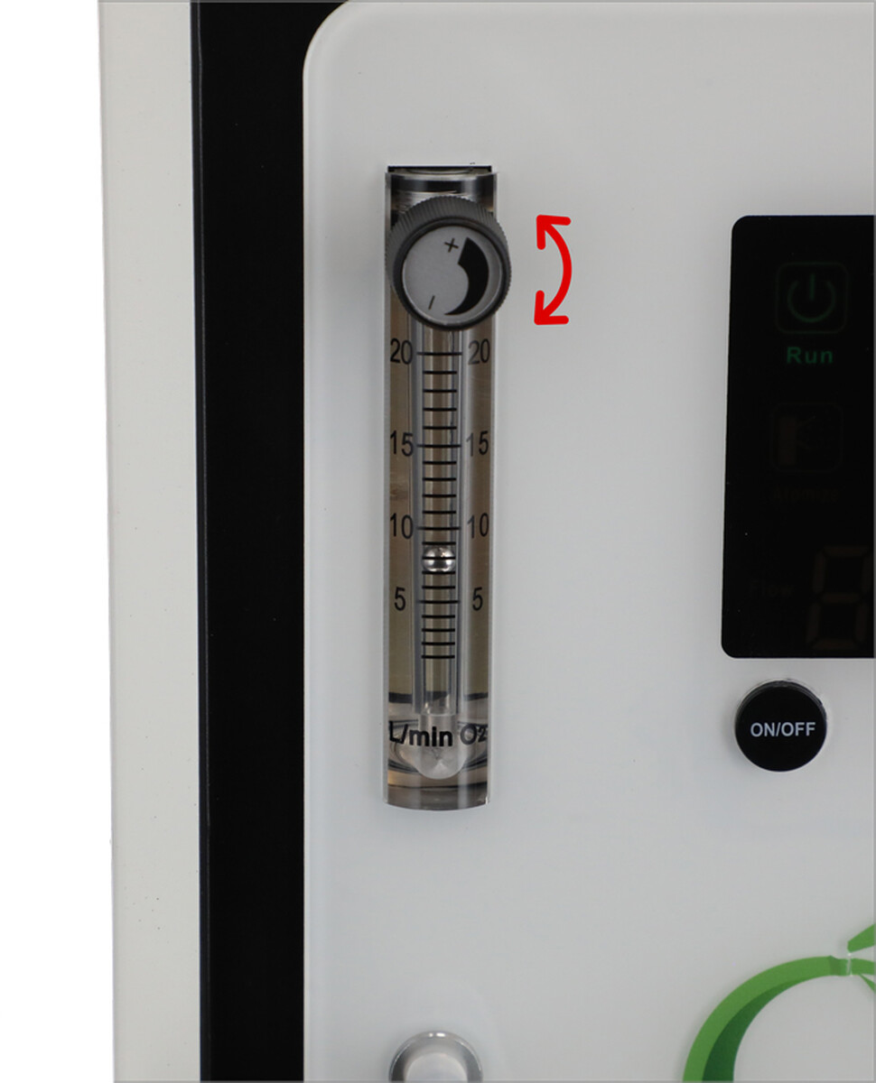 Koncentrátor je vybavený dvomi prietokomermi, ktoré umožňujú nastaviť prietok kyslíka pre každý výstup zvlášť podľa konkrétnych potrieb pacientov.