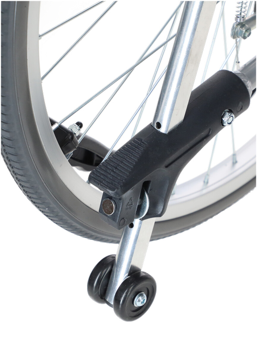 Predné kolesá sú bezdušové, rovnako ako aj zadné (s výnimkou verzie s pneumatickými kolesami), ktoré sú doplnené plastovými hnacími obručami a parkovacou brzdou (z oboch strán). Nechýbajú ani doplnkové stabilizačné kolieska na ochranu proti prevráteniu vozíka.