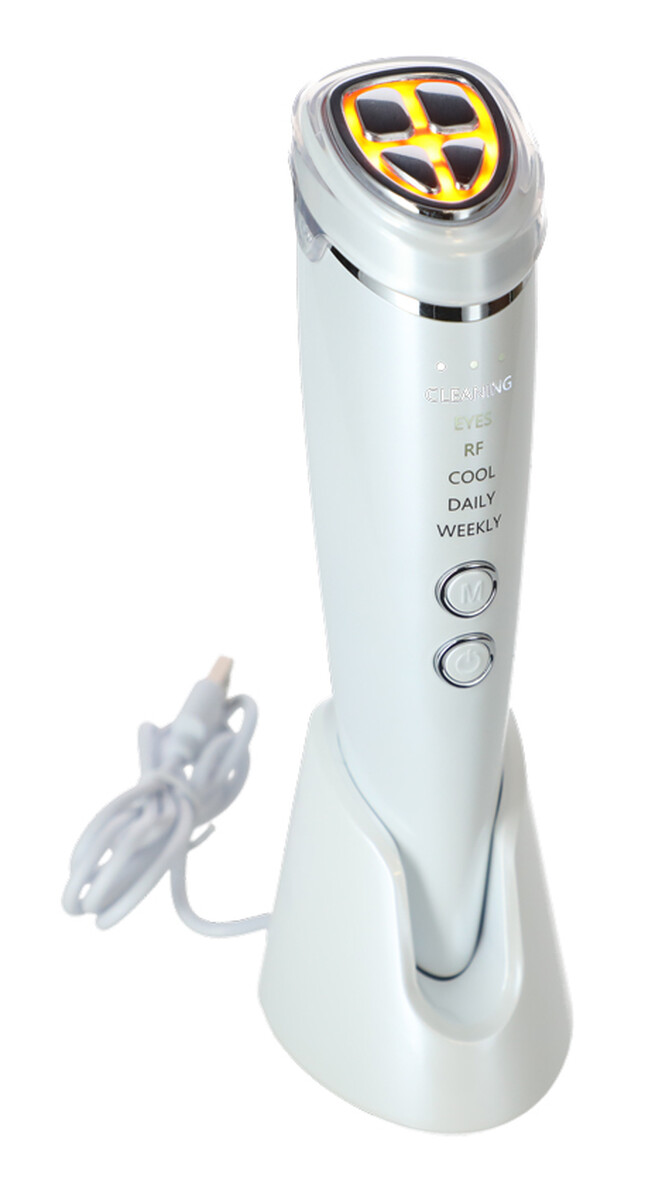 V tomto šikovnom kozmetickom prístroji je skĺbených 6 systémov pleťovej terapie – ultrazvukové vibrácie, LED fototerapia, nízkofrekvenčný EMS mikroprúd (25 KHz), RF – vysokofrekvenčné elektrické vlny (2 MHz), termoterapia zahrievaním a chladením pokožky a hĺbková detoxikácia s podporou vstrebávania účinných látok, ktorá je podobná galvanickej funkcii.