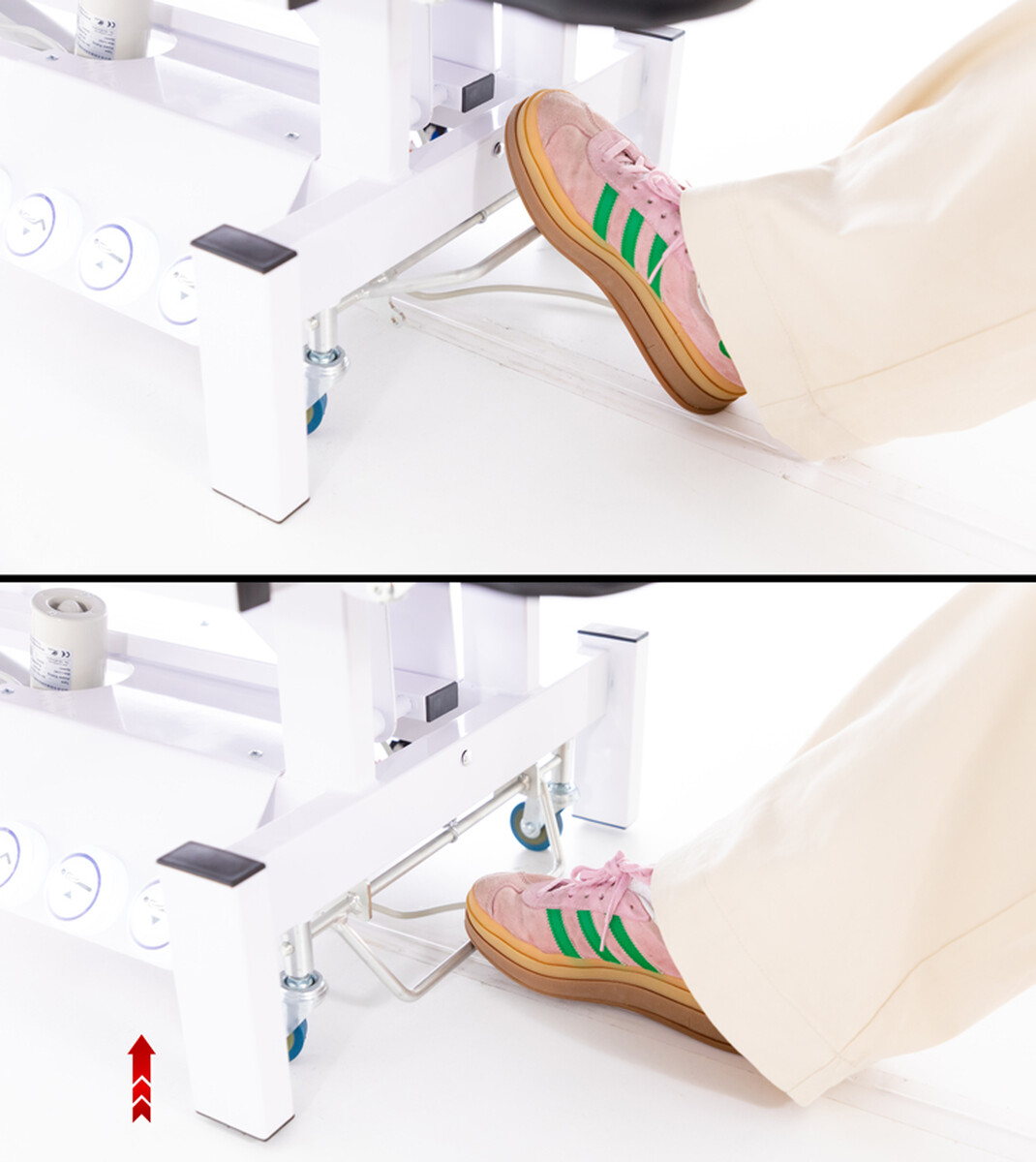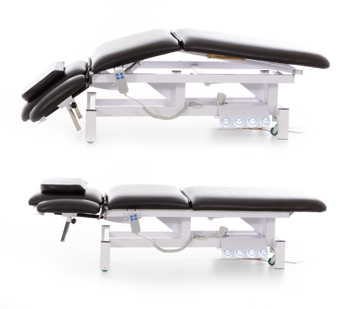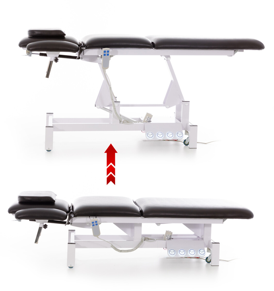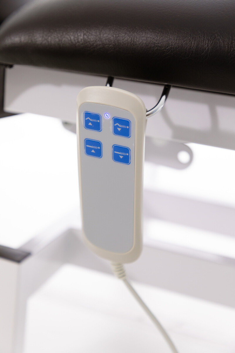 Vďaka elektrickému ovládaniu je výrazne znížená fyzická námaha obsluhy a zefektívnená manipulácia pri terapeutických úkonoch. Na ovládanie je k dispozícii ručný ovládač aj nožné spínače s podsvietením (dostupné z oboch strán postele), ktoré umožňujú nastaviť zariadenie bez potreby použitia rúk. Na ručný ovládač je na boku stola pripravený závesný háčik, vďaka ktorému je vždy ľahko dostupný.