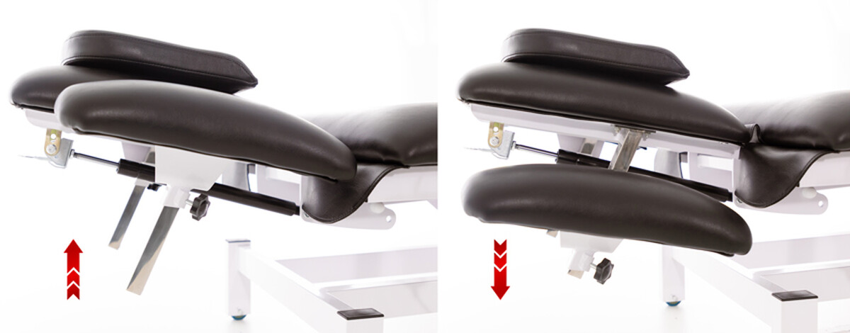 Lôžková časť masážneho stola HICO sa skladá z 3 hlavných segmentov, ktoré je možné ľahko napolohovať do požadovaného sklonu a prispôsobiť tak telo pacienta rôznym typom terapií a ošetrení. Variabilita polohovania je ideálna pre chiropraktickú prax, mobilizácie, uvoľňovanie blokád, klasické či špeciálne masáže, ako aj štandardné vyšetrenia v ambulanciách.