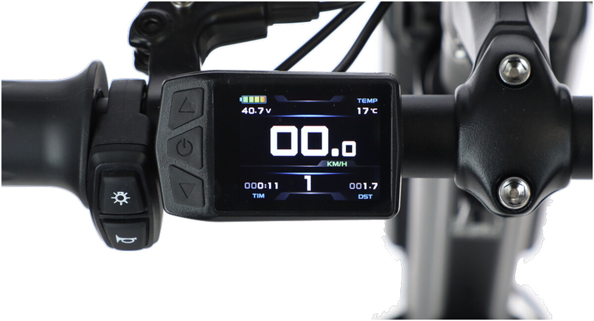 Farebný TFT displej s podsvietením zobrazuje všetky dôležité údaje jazdy, akými sú napríklad aktuálna rýchlosť, prejdená vzdialenosť, stav batérie, čas jazdy, teplota prostredia či motora. Displej je navyše vybavený USB portom, cez ktorý si môžete pohodlne nabiť mobilný telefón.