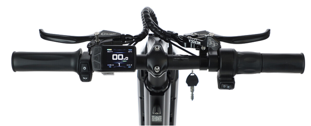 Celé ovládanie sa nachádza na rukovätiach – displej s tlačidlami, ovládanie rýchlosti aj brzdy sú vždy poruke, čo zaručuje pohodlie a maximálnu kontrolu počas používania. Nechýba ani praktická funkcia tempomatu, ktorá umožní udržiavať stálu rýchlosť bez neustáleho ovládania.