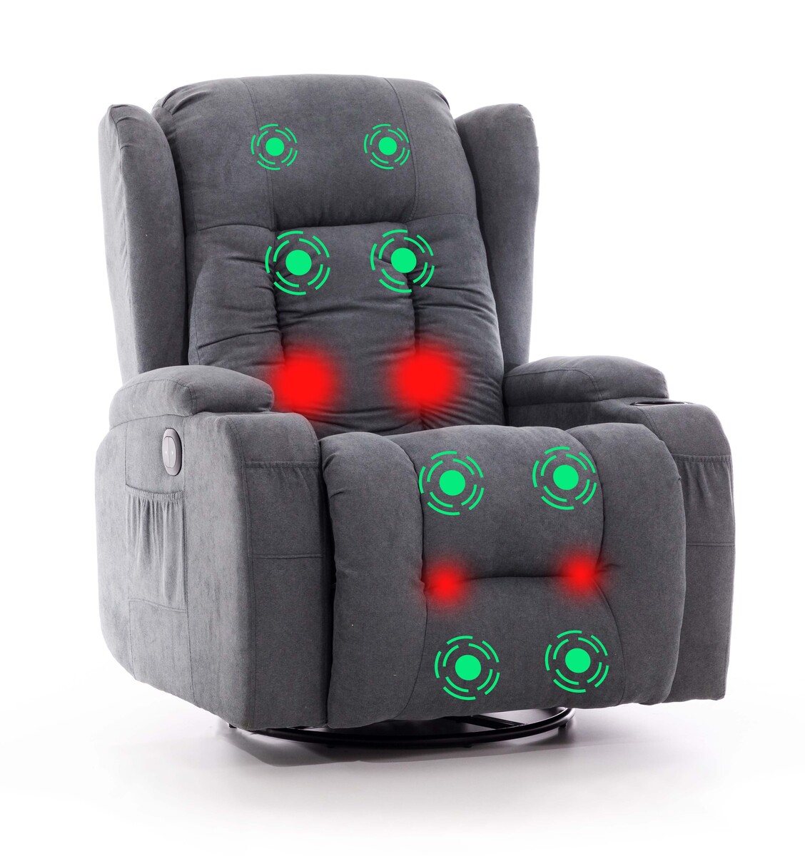 Pohodlné polohovateľné kreslo s funkciou masáže, vyhrievania, hojdania a otáčania, ideálne do každého interiéru.