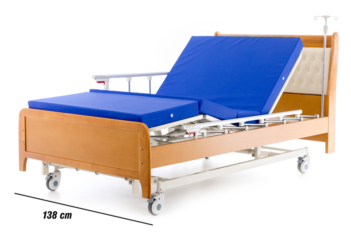 Elektrická polohovacia posteľ Elegance je klasické zdravotnícke lôžko, ktoré spája osvedčenú funkčnosť s elegantným dizajnom. Posteľ vyniká priestrannosťou, extra šírkou až 138 cm, dreveným dekorom a čalúneným čelom, vďaka čomu pôsobí v priestore harmonicky a domácky. Estetické spracovanie v kombinácii s praktickými funkciami prináša pacientovi komfort a pocit bezpečia.