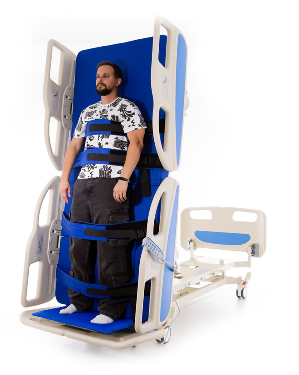 Zdravotná polohovateľná posteľ so záložnou batériou a jedinečnou vertikalizačnou funkciou, ktorá umožní jednoduchý a bezpečný prechod z ľahu do stoja.