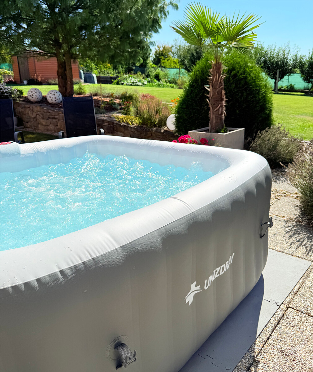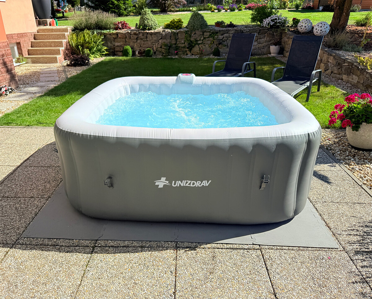 Túžite po vírivke, ktorá vám poskytne dokonalý oddych bez toho, aby zaberala veľa priestoru? Prémiová nafukovacia vírivka UNIZDRAV, ideálna pre 4–6 osôb, sa vďaka svojim kompaktným rozmerom 185 x 185 x 65 cm hodí aj do menších záhrad, na terasu či do interiéru. A čo je najlepšie – môžete si ju užívať počas celého roka. V lete ju postavíte vonku, v zime ju prenesiete do temperovaného priestoru a doprajete si horúci kúpeľ aj počas chladných dní.