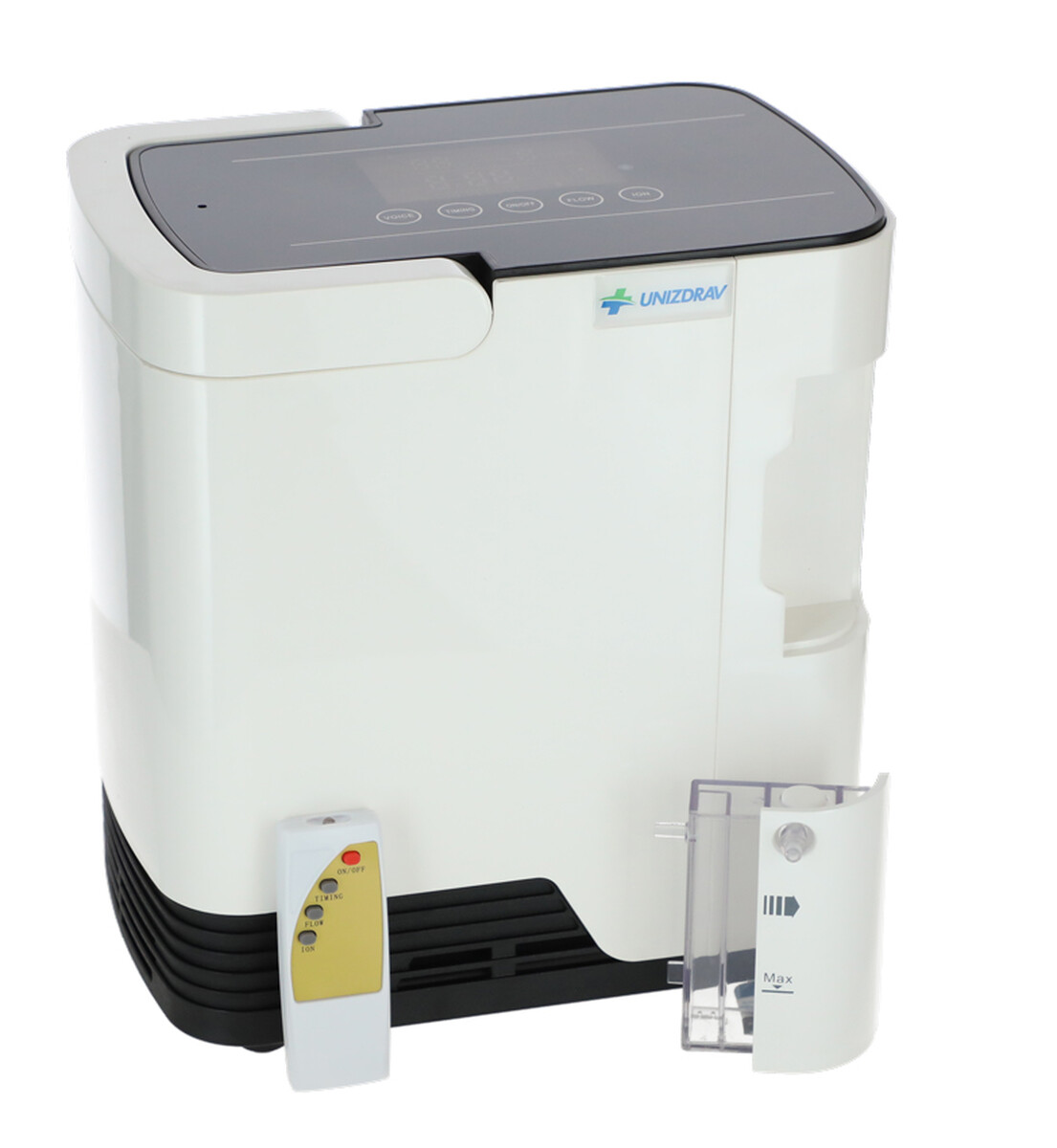 Kyslíkový koncentrátor s hlasovým výstupom UNIZDRAV je kompaktný generátor kyslíka určený na individuálnu kyslíkovú terapiu v pohodlí domova. Praktické diaľkové ovládanie a hlasový sprievodca prinášajú pacientom jednoduchú obsluhu zariadenia a priebežné informovanie o aktuálnom stave prevádzky.