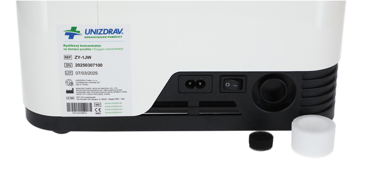 Kyslíkový koncentrátor s hlasovým výstupom UNIZDRAV, 7 l/min, biely
