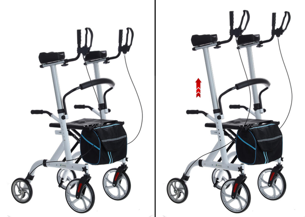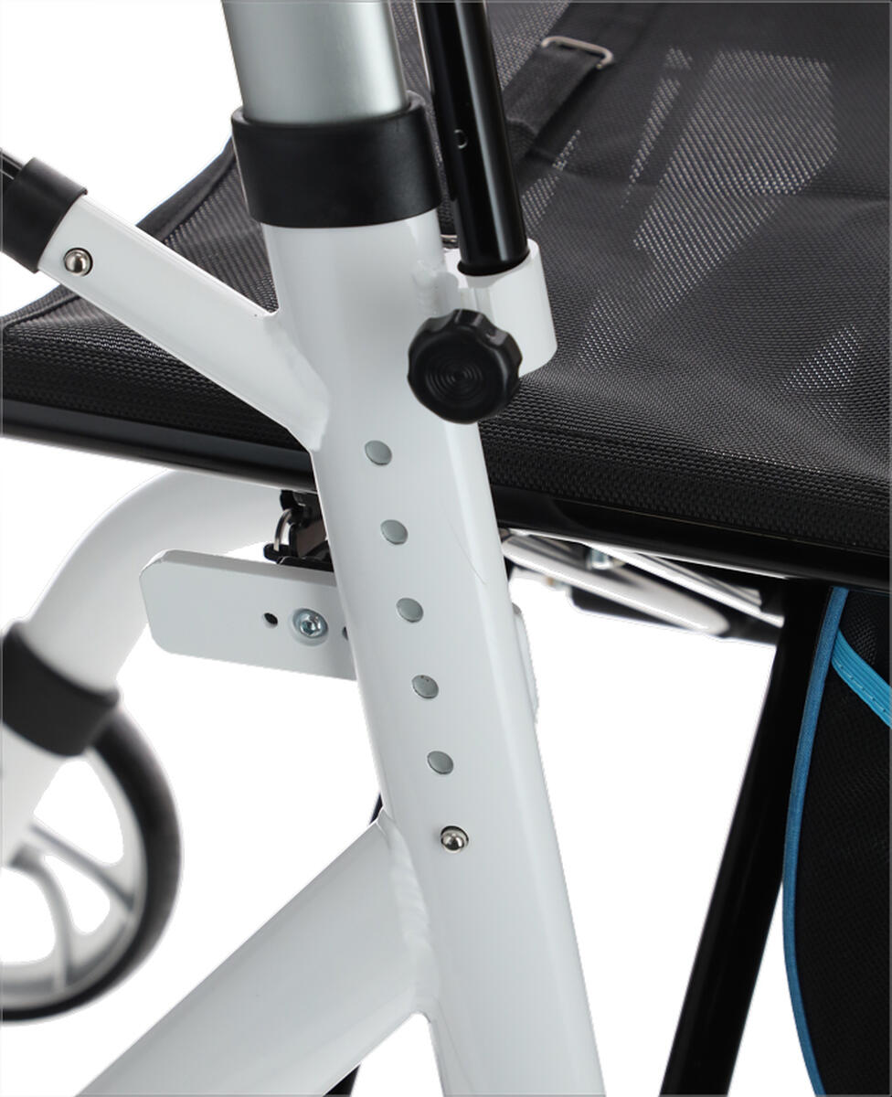 Komfort používania chodítka zaručuje možnosť prispôsobenia výšky v 6 stupňoch, látkové sedadlo, mäkčené predĺžené opierky rúk a ergonomické rukoväte s integrovanými brzdami, ktoré zaisťujú jednoduché ovládanie počas chôdze. Okrem toho je k dispozícii takisto opierka chrbta a pri nej ďalšie krátke podporné rukoväte.