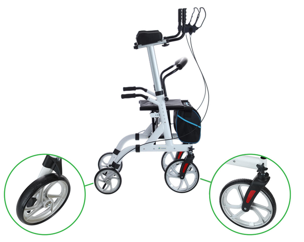 Pojazdné chodítko s predĺženými lakťovými opierkami od značky UNIZDRAV je praktickou rehabilitačnou pomôckou pre seniorov a osoby so zníženou pohyblivosťou. Štvorkolka poskytuje stabilnú oporu, uľahčuje udržiavanie vzpriamenej polohy a zjednodušuje každodenný pohyb doma aj pri vychádzkach či nákupoch.