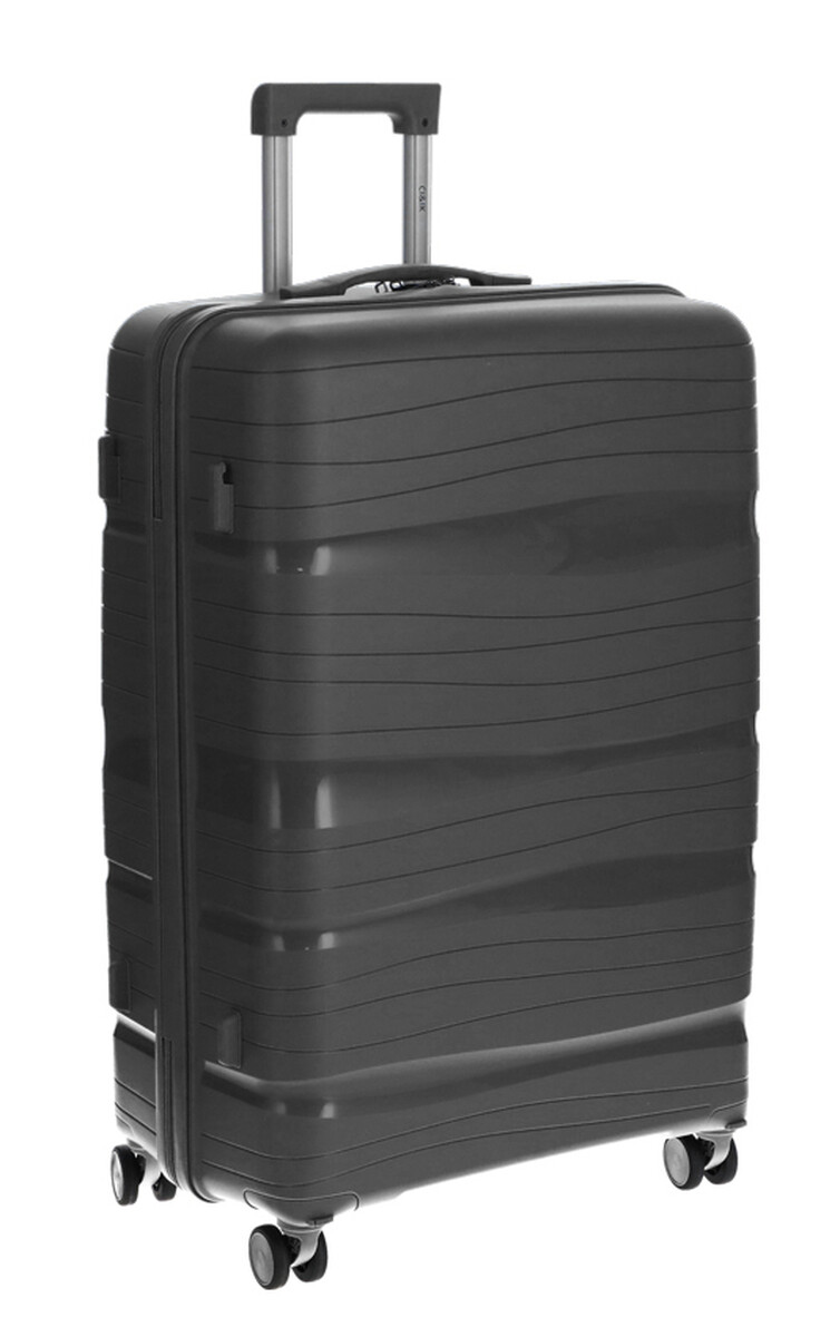Štýlový cestovný kufor s odolným telom z polypropylénu, otočnými kolieskami a ergonomickou rukoväťou – ideálny na každú cestu.
