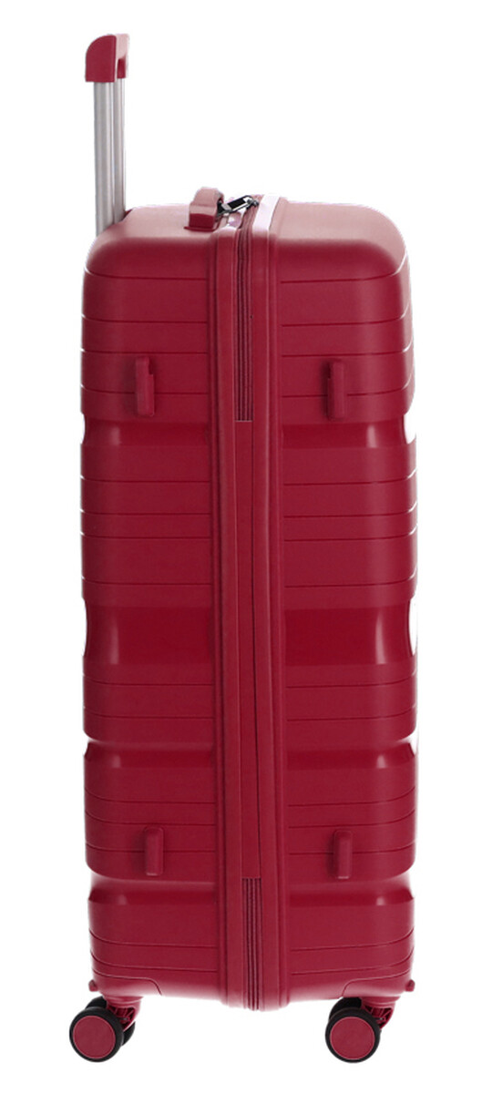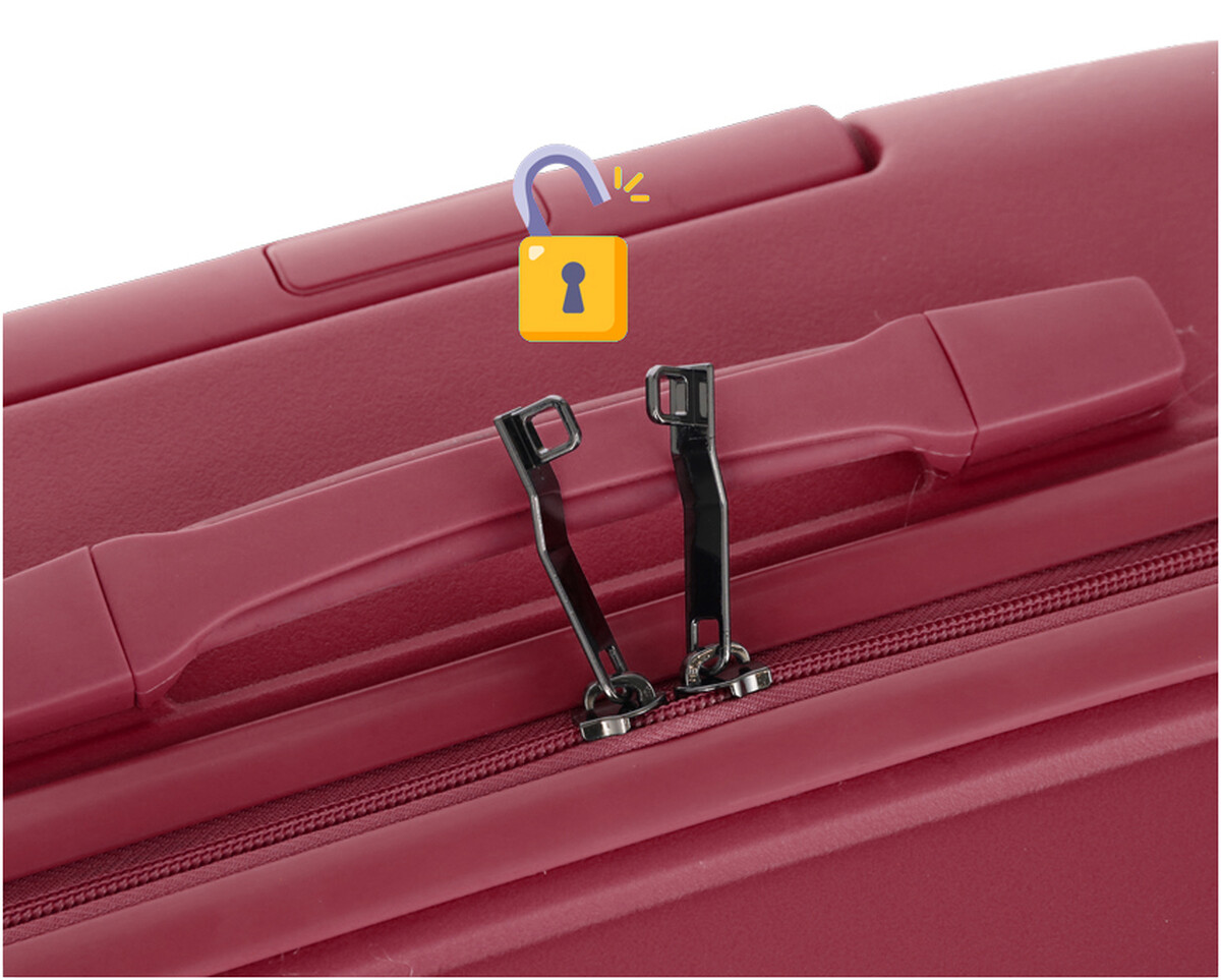 Štýlový cestovný kufor v modernom dizajne a nadčasovej bordovej farbe sa stane spoľahlivým spoločníkom na každej vašej ceste. Vyniká najmä ľahkou manipuláciou, nízkou hmotnosťou, vysokou odolnosťou a priestranným úložným priestorom.