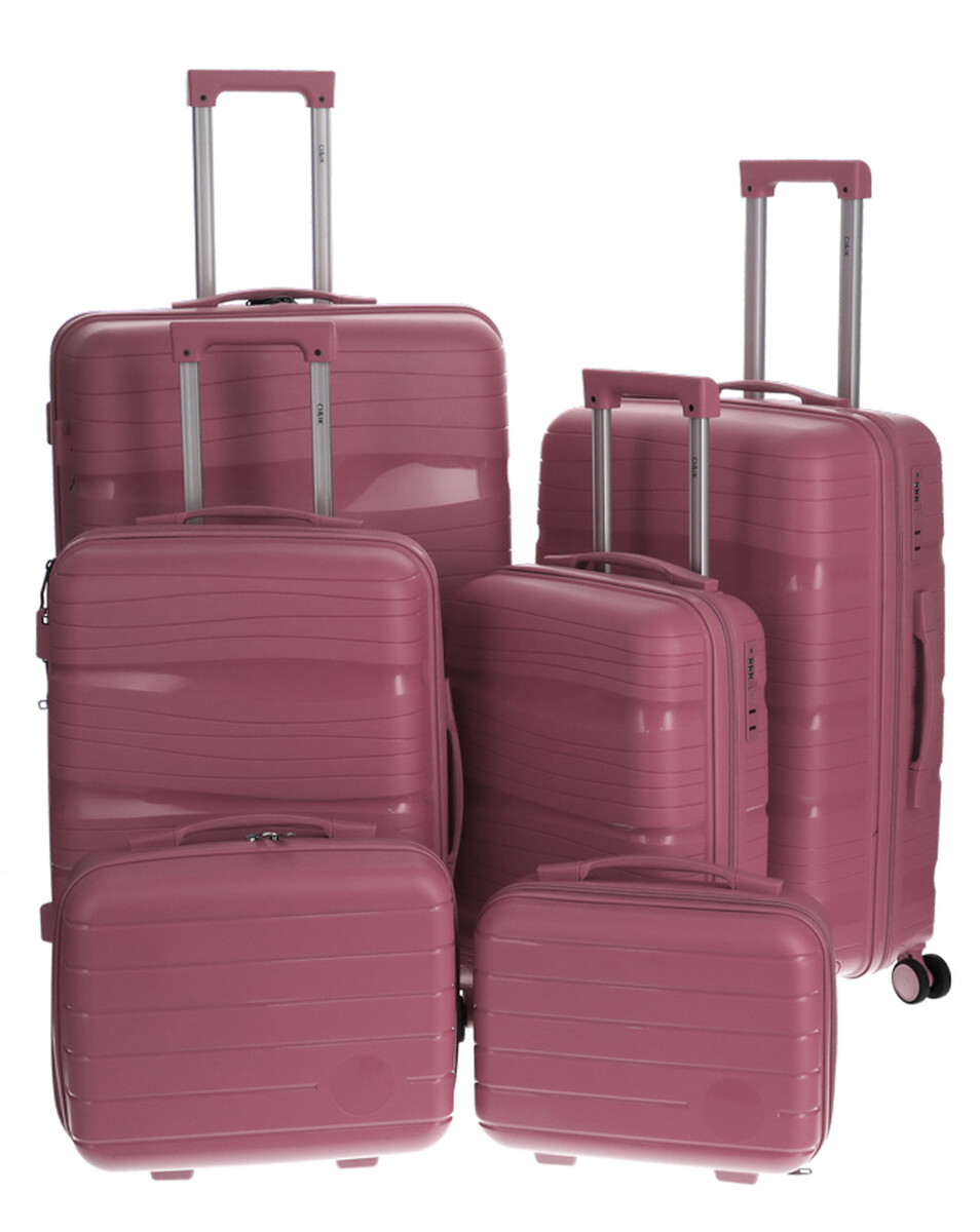 V ponuke nájdete šesť rôznych veľkostí – od objemných kufrov na dlhé cesty, cez praktickú príručnú batožinu až po kompaktné kozmetické kufríky.