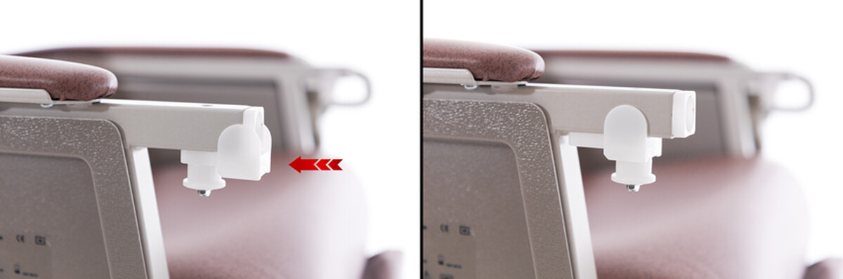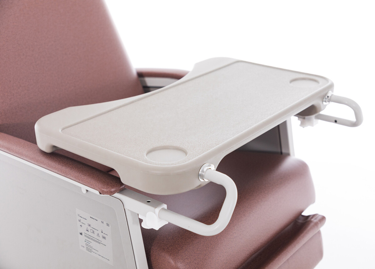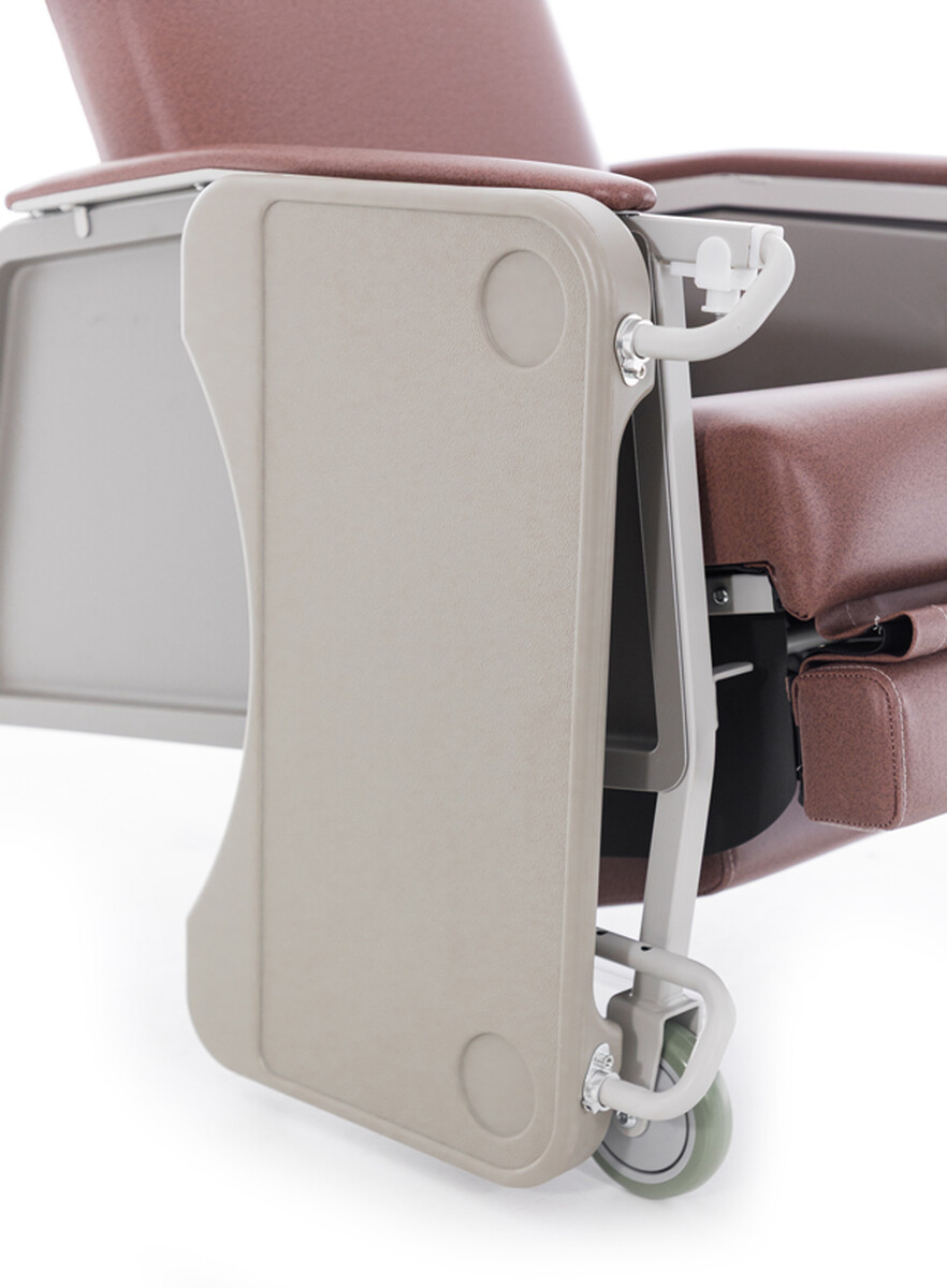 Integrovaný jedálenský stolík s jednoduchým upevnením možno po použití odložiť priamo na bok tela kresla, takže bude vždy po ruke a zároveň nebude prekážať. Skrytá nastaviteľná podnožka uľahčí vstávanie a minimalizuje riziko zakopnutia.