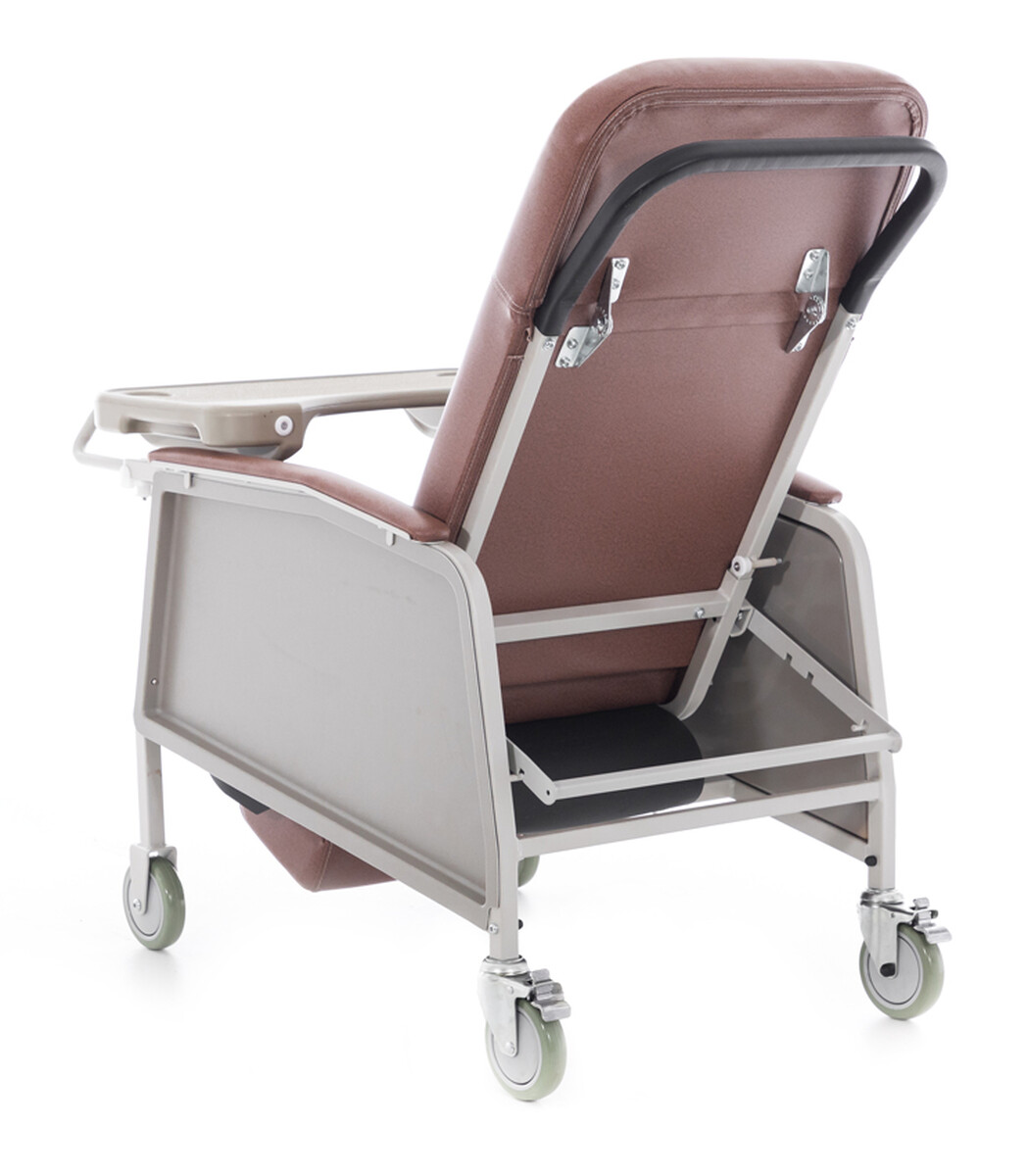Seniorské kreslo má praktické doplnky a precízne spracovanie. Sklápací mechanizmus sa dá ovládať jednoducho a rýchlo, čo znižuje námahu personálu. Praktické madlo a kolieska so zadnými brzdami zabezpečia stabilitu a bezproblémové presúvanie kresla z miesta na miesto.