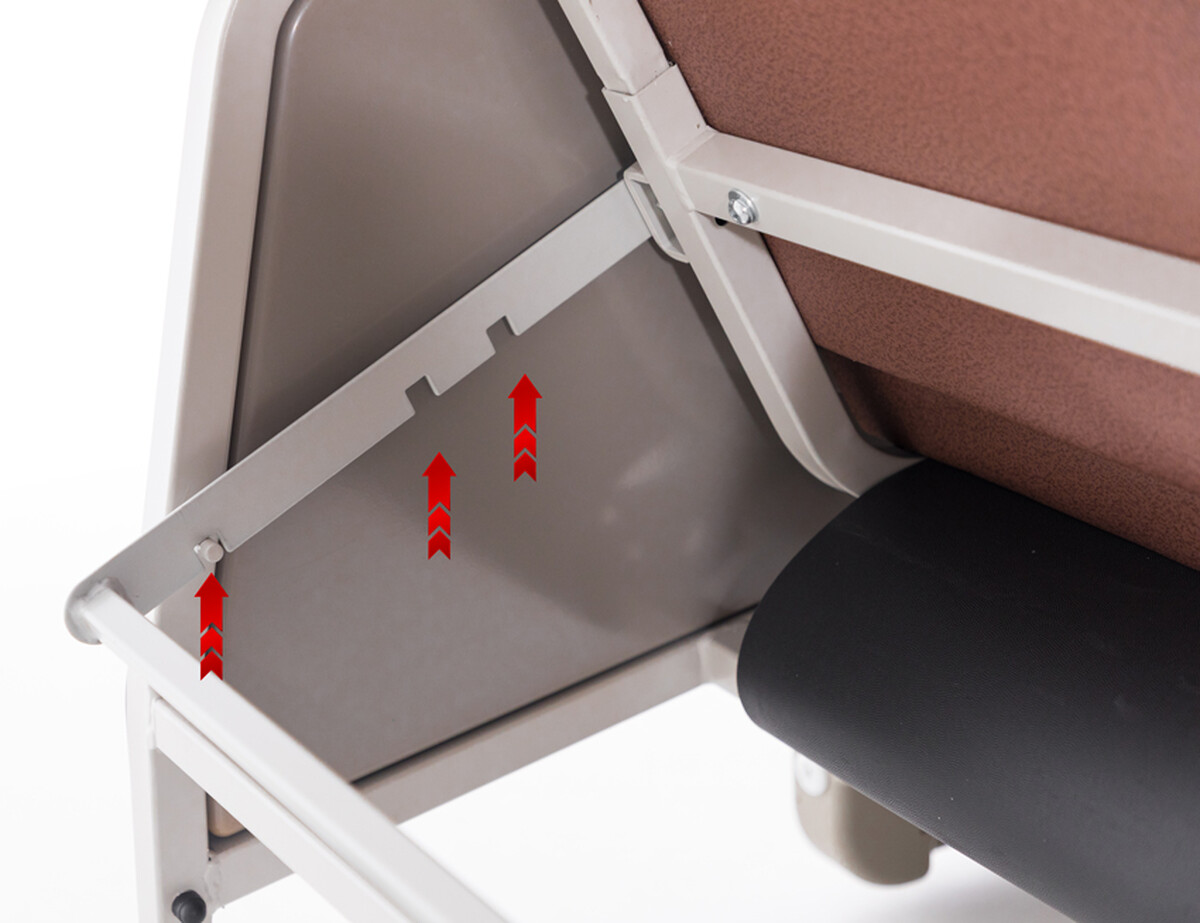 - pololežiaca poloha s uhlom operadla 61° a podnožky 13° – vhodná pri odberoch krvi, meraní tlaku, podávaní infúzií alebo relaxácii