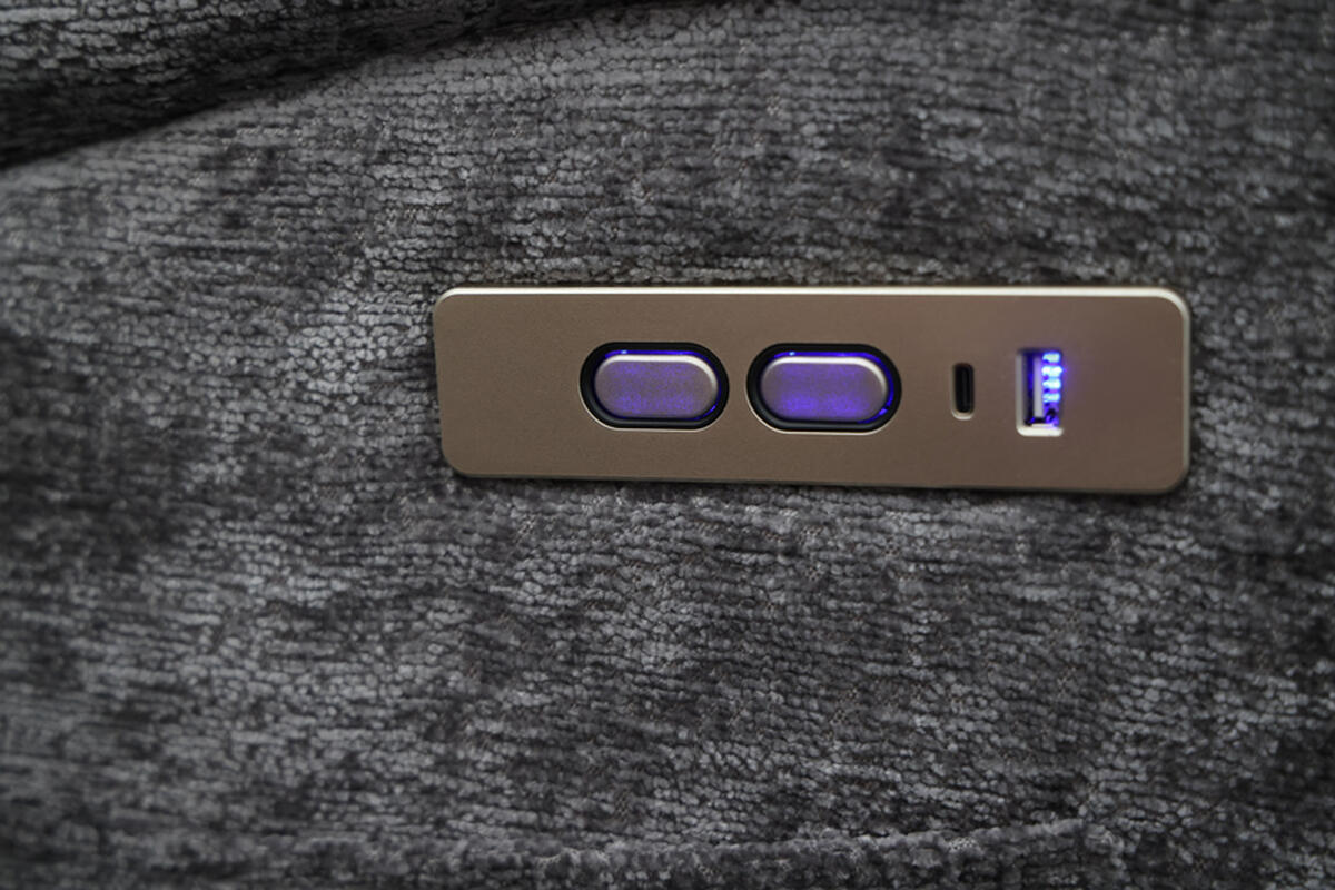 Kreslo je vybavené na dnešnú dobu už priam nevyhnutným USB-C a USB-A nabíjacím portom, s ktorým si môžete v prípade potreby nabiť svoj mobilný telefón, tablet a iné USB zariadenia.