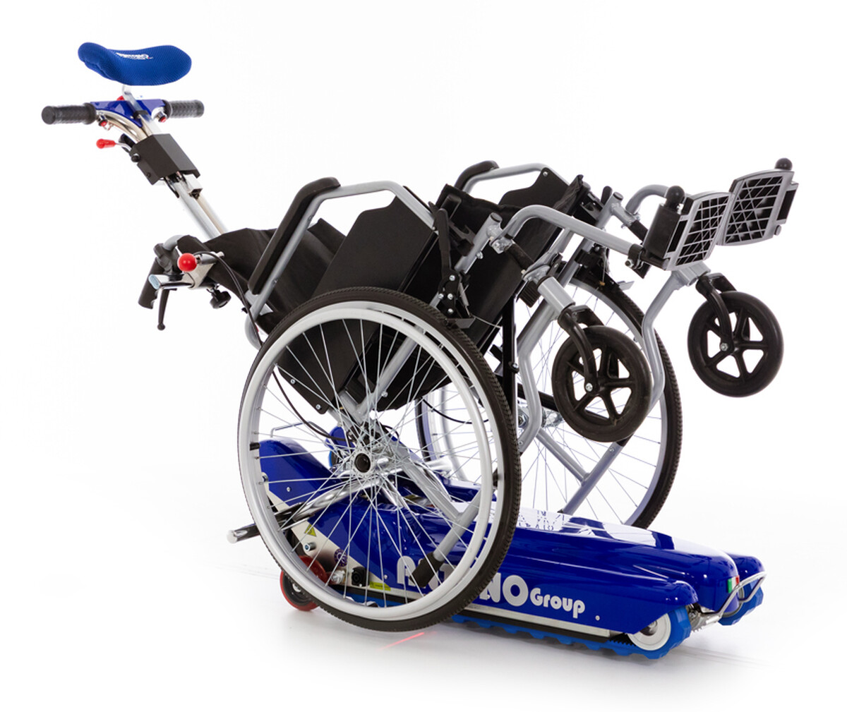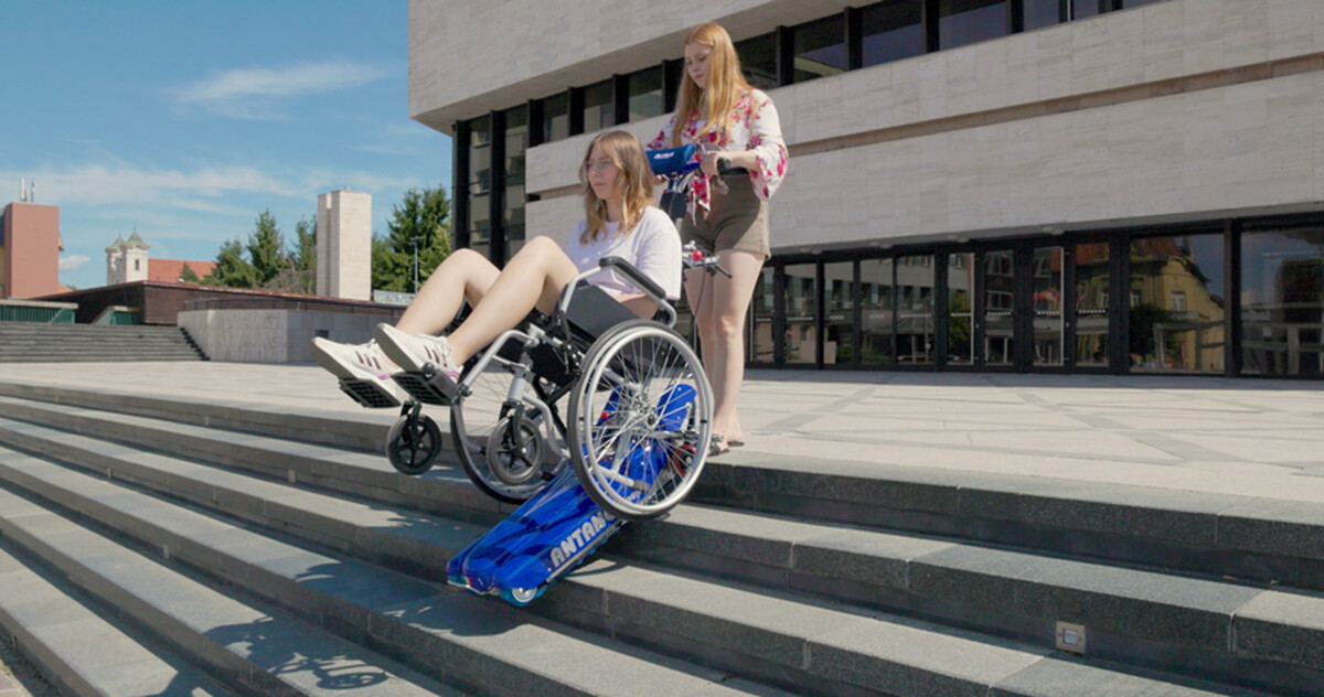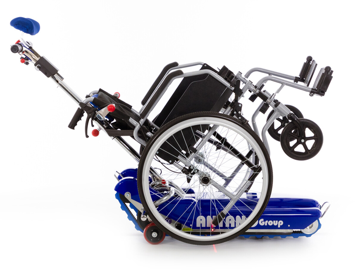 Prenosné zdvíhacie zariadenie na bezpečný a pohodlný presun pacientov po schodoch v interiéri aj exteriéri – bez nutnosti presadania z vozíka na schodolez a späť.