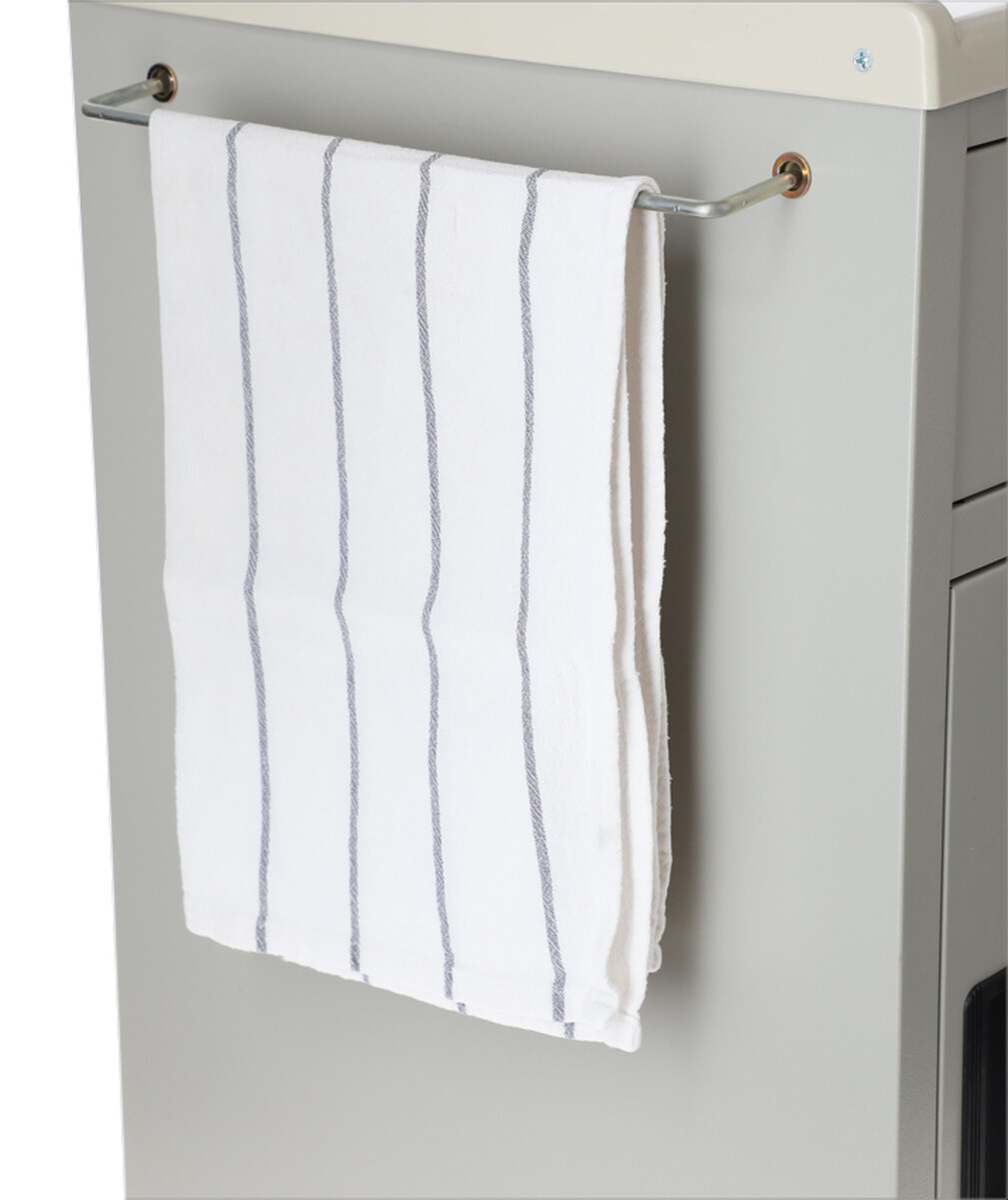 Súčasťou nočného stolíka je jedna uzamykateľná zásuvka a jedna priestranná skrinka s poličkou, kde sa zmestí všetko potrebné od pracovného vybavenia, liečiv až po osobné veci. Vrchná odkladacia plocha je doplnená o vyvýšené okraje, ktoré pomáhajú zabrániť pádu predmetov. Na oboch stranách skrinky sú navyše k dispozícii praktické vešiaky, ktoré poslúžia na zavesenie príručného uteráka alebo iných ľahších predmetov.