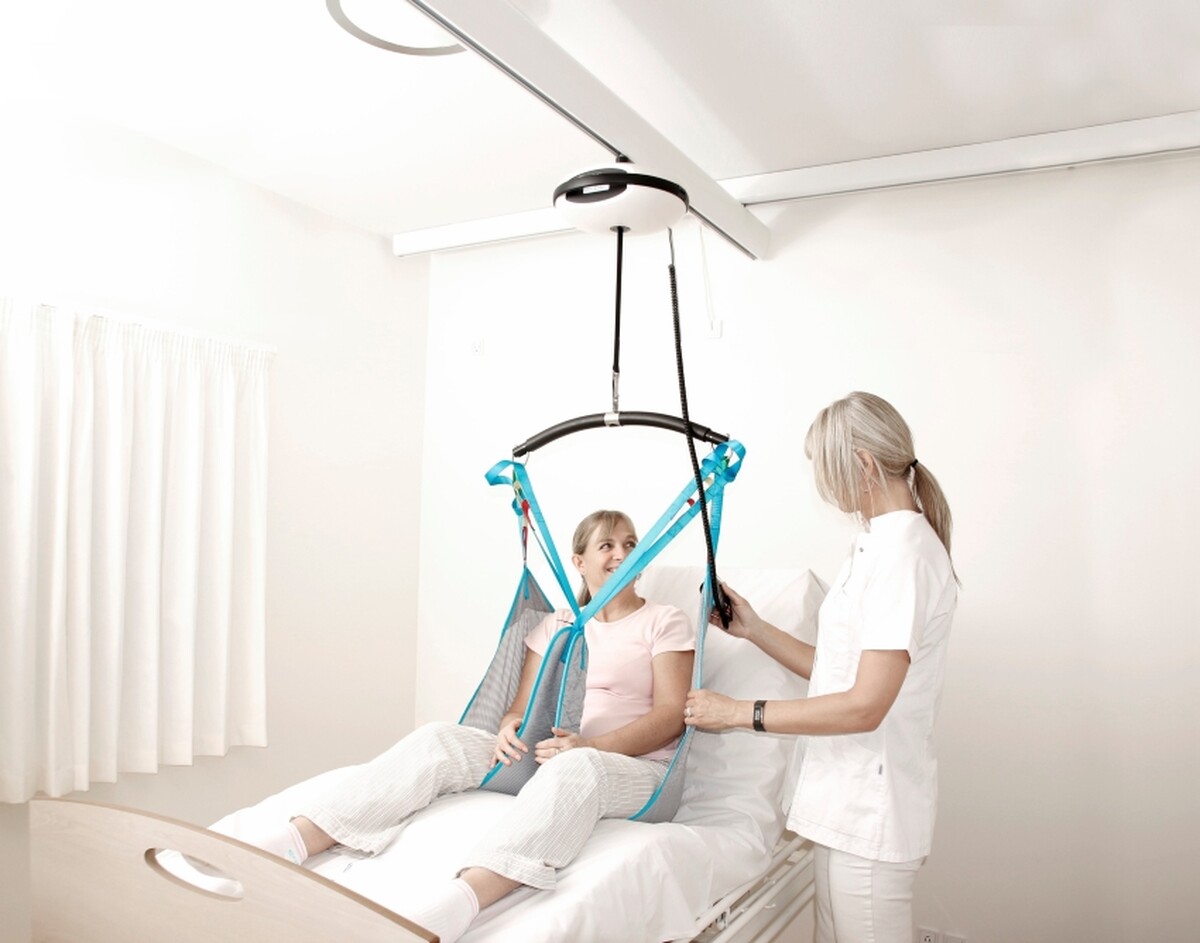 Integrovaný ovládač s intuitívnym nastavením sa stará o plynulý pohyb zdvíhacieho systému, čím výrazne znižuje fyzickú záťaž opatrovateľov a pomáha predchádzať bolestiam a poškodeniu chrbtice. Spolu so špeciálne navrhnutým zdvíhacím vakom je zárukou bezproblémového, bezpečného a pohodlného presunu pacienta z postele na vozík, do kresla, na toaletu, nad bazén či do sprchy – všade tam, kde je nevyhnutná spoľahlivá manipulácia s osobou.