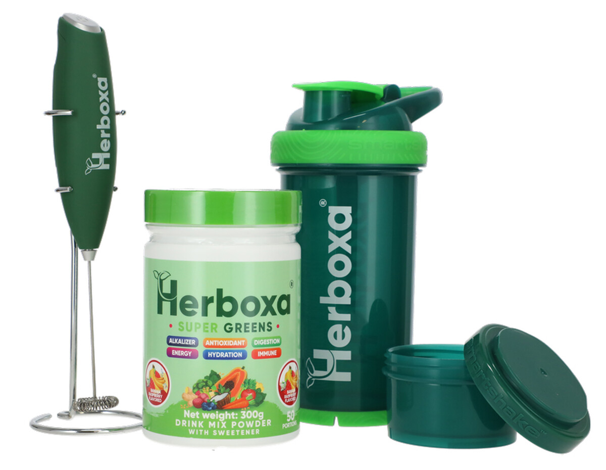 Získajte každodennú dávku vitality z prírody s výživovým doplnkom Herboxa SUPER GREENS. Táto výnimočná nápojová zmes obsahuje viac ako 30 druhov zelených superpotravín, vitamínov, minerálov a enzýmov, ktoré podporia vaše zdravie. Telo detoxikuje a poskytuje mu prirodzenú energiu bez kofeínu. Posilňuje imunitu a trávenie, zlepšuje hydratáciu organizmu, zásobuje ho silnými antioxidantmi a prispieva k udržaniu acidobázickej rovnováhy (alkalizuje telo).