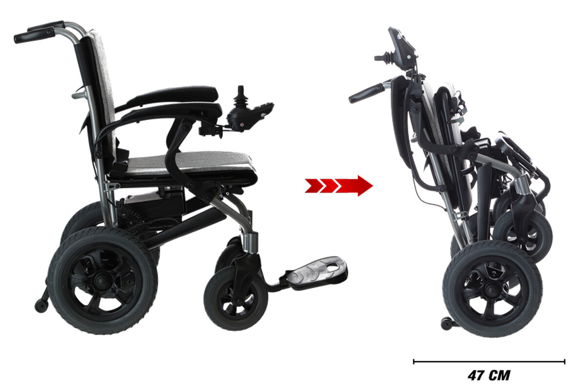Skladací elektrický invalidný vozík pre imobilných pacientov kombinuje ľahký rám, intuitívne ovládanie, dlhý dojazd a vysokú bezpečnosť.