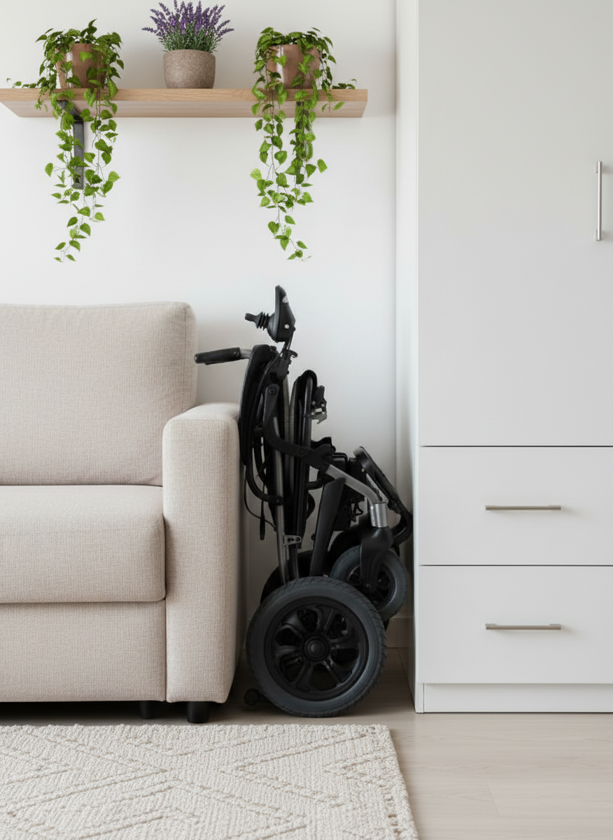 Invalidný vozík Yuwell D130FL má kompaktné rozmery a polomer otáčania iba 1,2 metra, čo umožňuje bezproblémové manévrovanie aj v úzkych chodbách a stiesnených priestoroch. Ľahký oceľový rám s váhou len 19 kg a jednoduchým mechanizmom skladania zjednodušuje prenášanie, skladovanie aj prepravu autom či verejnou dopravou.
