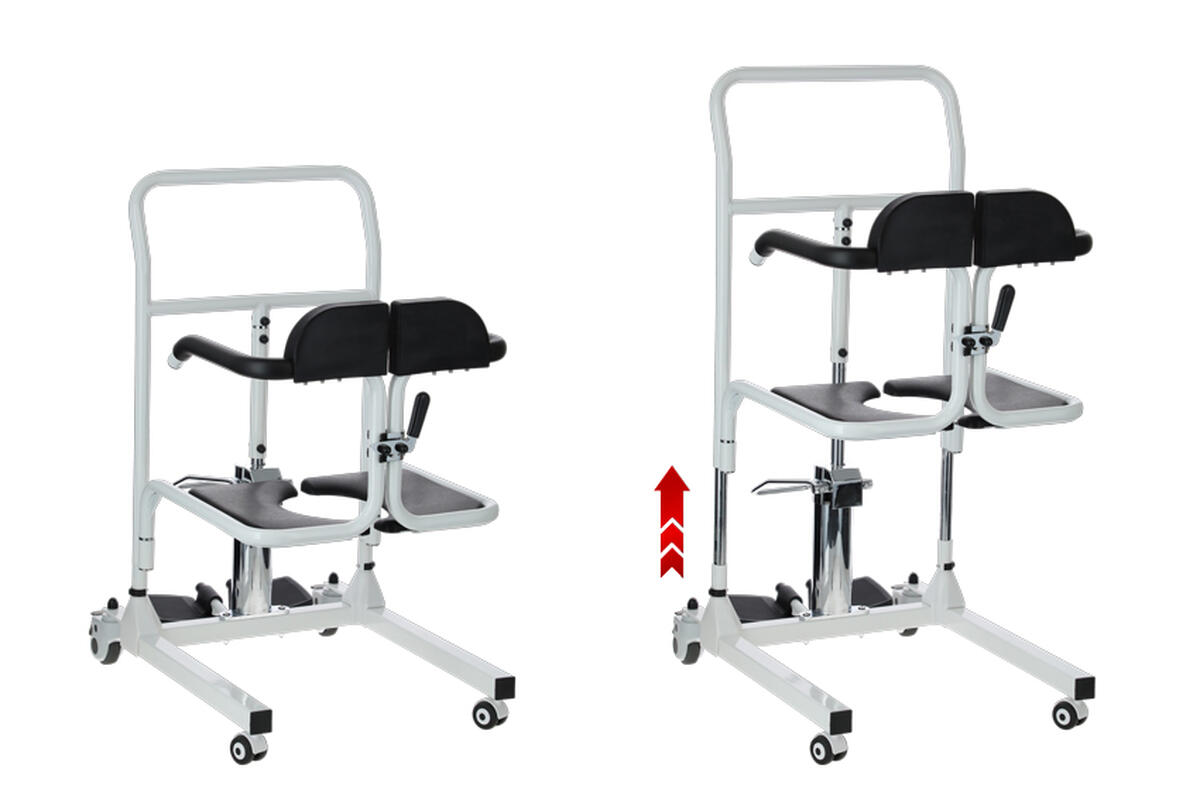 Pomocné zdvíhacie zariadenie s hydraulickým výškovým nastavením zjednodušuje každodenné presuny pacientov na lôžko, vozík či toaletu.