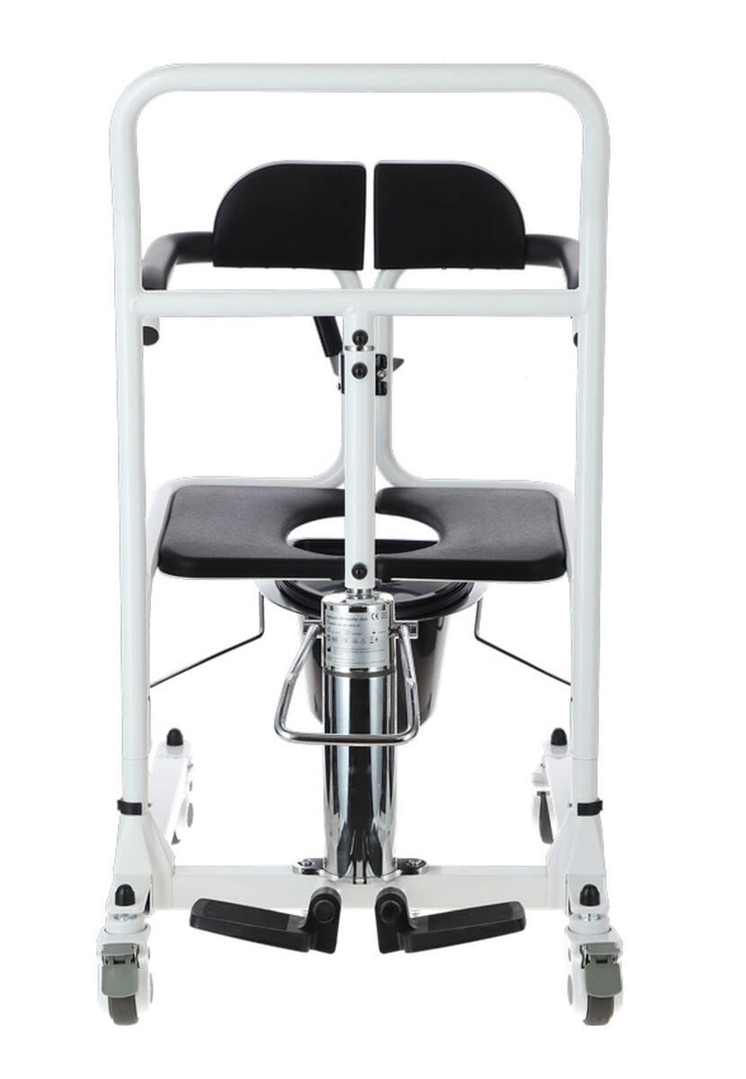Pomocné zdvíhacie zariadenie s hydraulickým výškovým nastavením a priestorom pre toaletné vedierko zjednodušuje každodenné presuny pacientov.