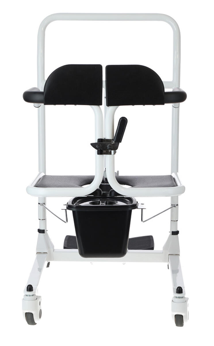 Vďaka pridanému priestoru na toaletné vedro poslúži stolička aj ako mobilná toaleta. Toaletné vedierko sa jednoducho zasúva do konštrukcie v zadnej časti stoličky, kde je vždy ľahko dostupné.