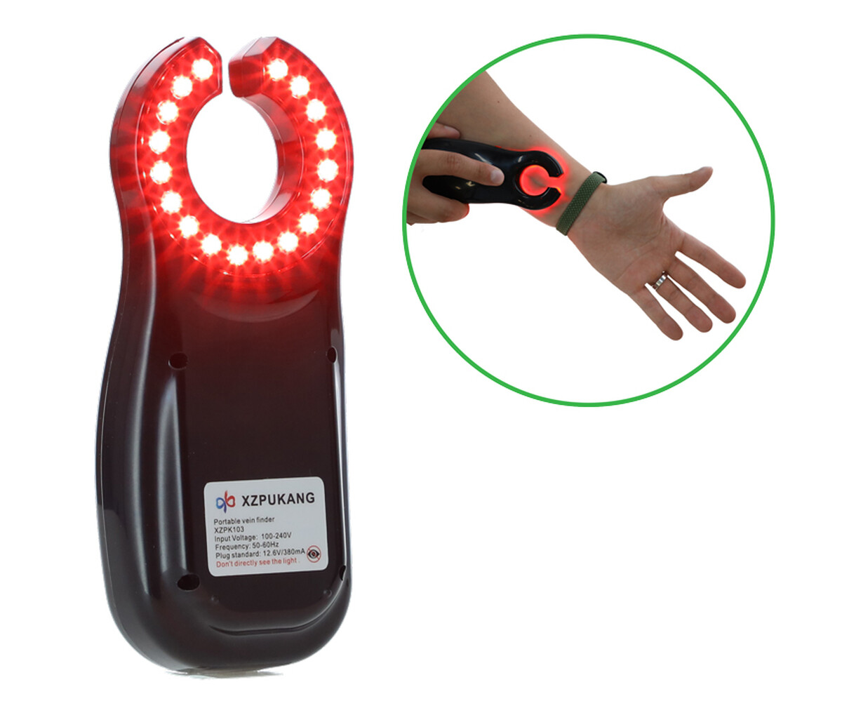 Prístroj na vyhľadávanie žíl je ľahký, kompaktný a dá sa ovládať jednou rukou. Aktivuje sa stlačením tlačidla na boku, ktoré rozsvieti LED diódy. Otvor v tvare "C" následne umožní zaviesť ihlu bez nutnosti odkladať zariadenie.