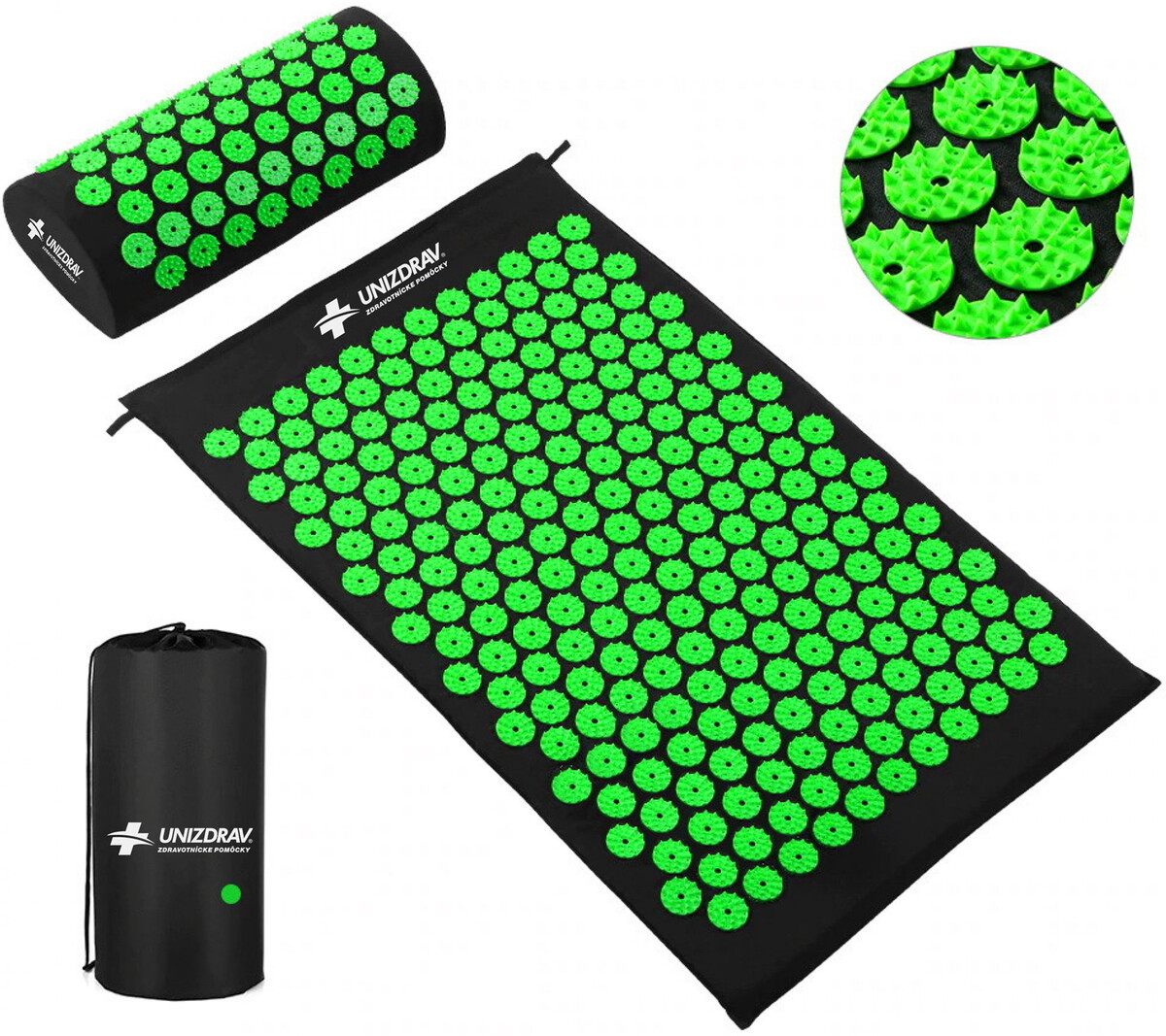 Akupresúrna podložka s vankúšom UNIZDRAV, čierno-zelená - NATRHNUTÉ
