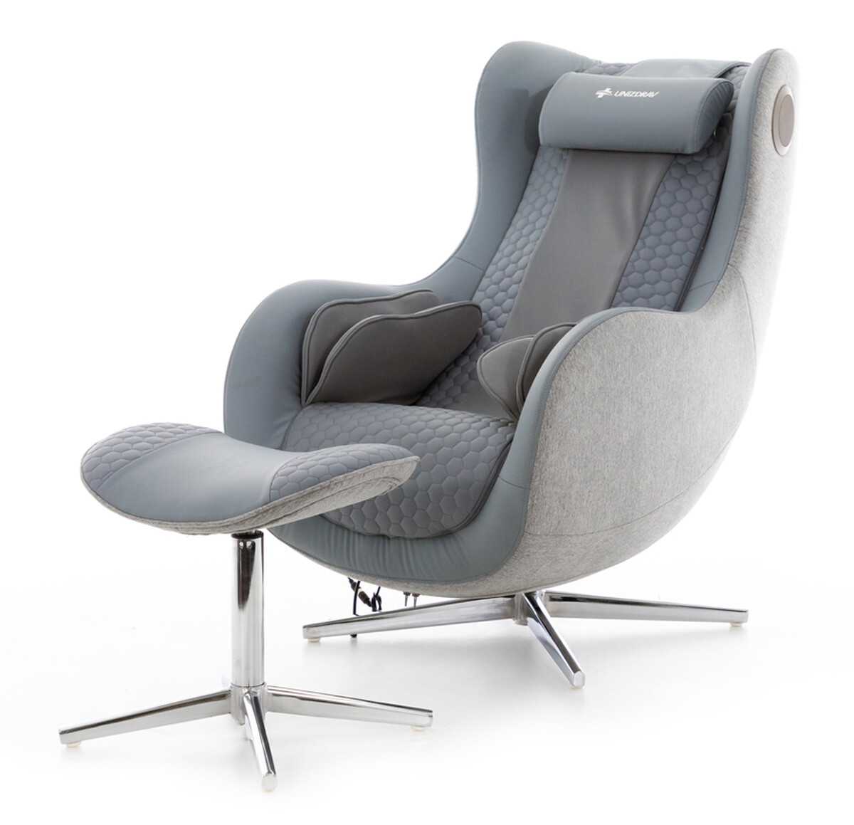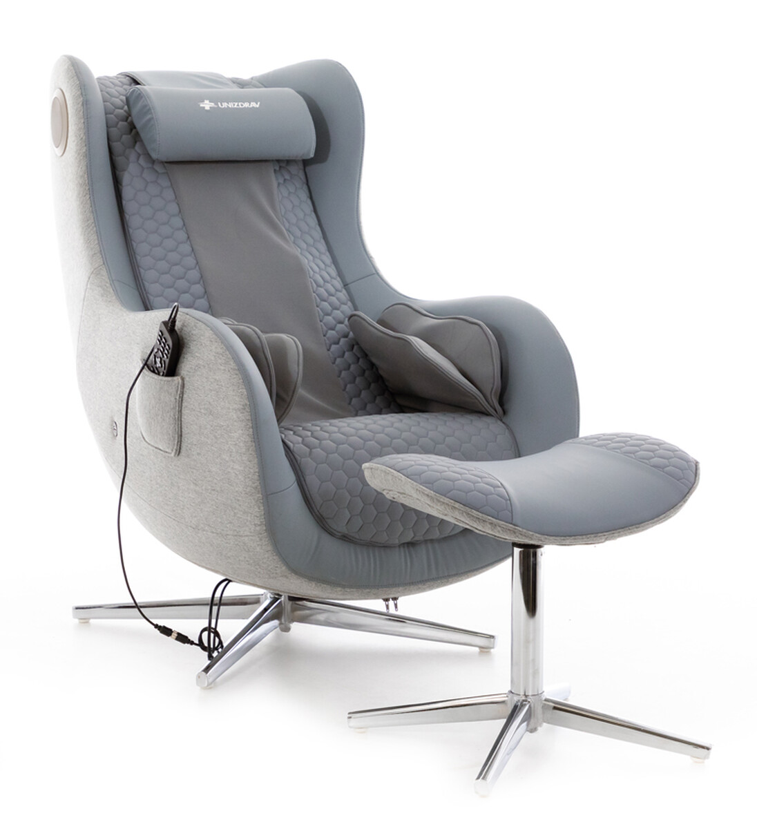 Masážne kreslo s podnožkou je doplnené hneď niekoľkými užitočnými detailmi. Vstavané reproduktory s Bluetooth spojením vám umožnia užiť si masáž pri obľúbenej hudbe a USB nabíjací port zasa pohodlné nabitie telefónu alebo iného zariadenia.
