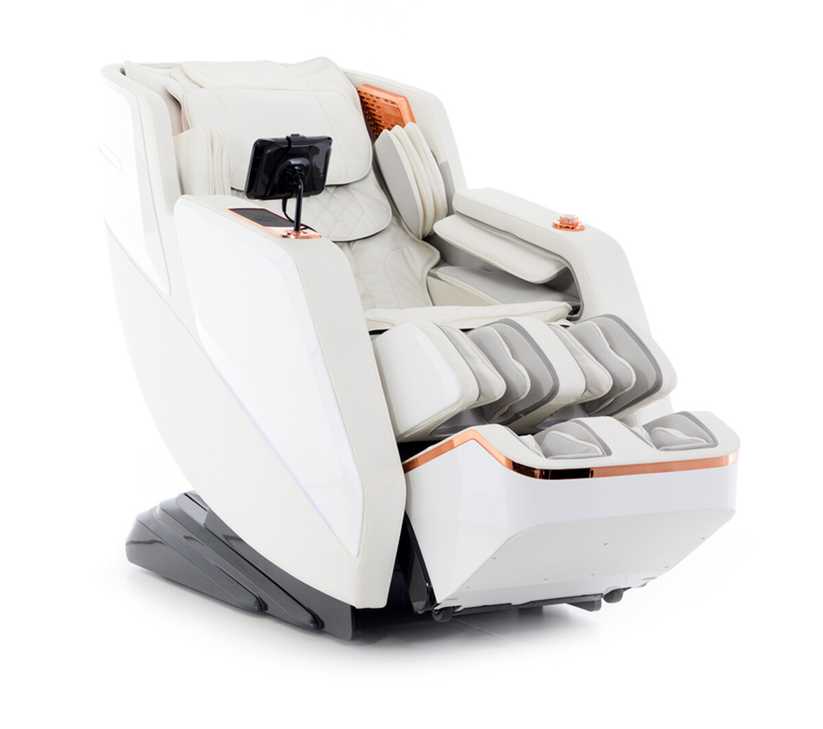 Prémiové masážne kreslo v nápaditom dizajne vybavené najnovšími smart technológiami vrátane funkcie uvoľňovania negatívnych iónov. Inštalácia v cene.