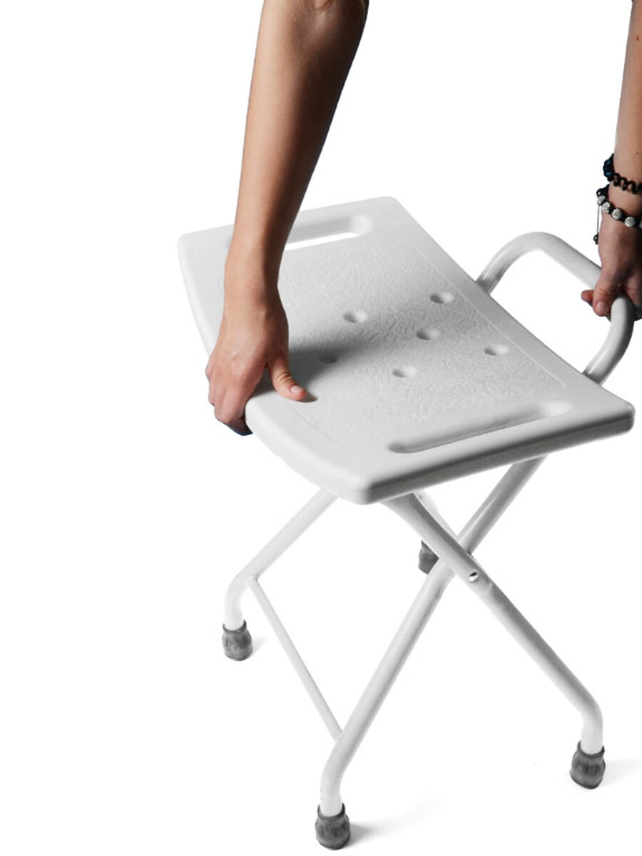 Kompaktné rozmery a praktická skladacia konštrukcia sprchovacej stoličky umožňujú rýchle zloženie aj rozloženie, takže ju ľahko uskladníte a presuniete tam, kde ju práve potrebujete. Vďaka svojmu tvaru ju možno pohodlne použiť v sprchovacom kúte aj vo vani.