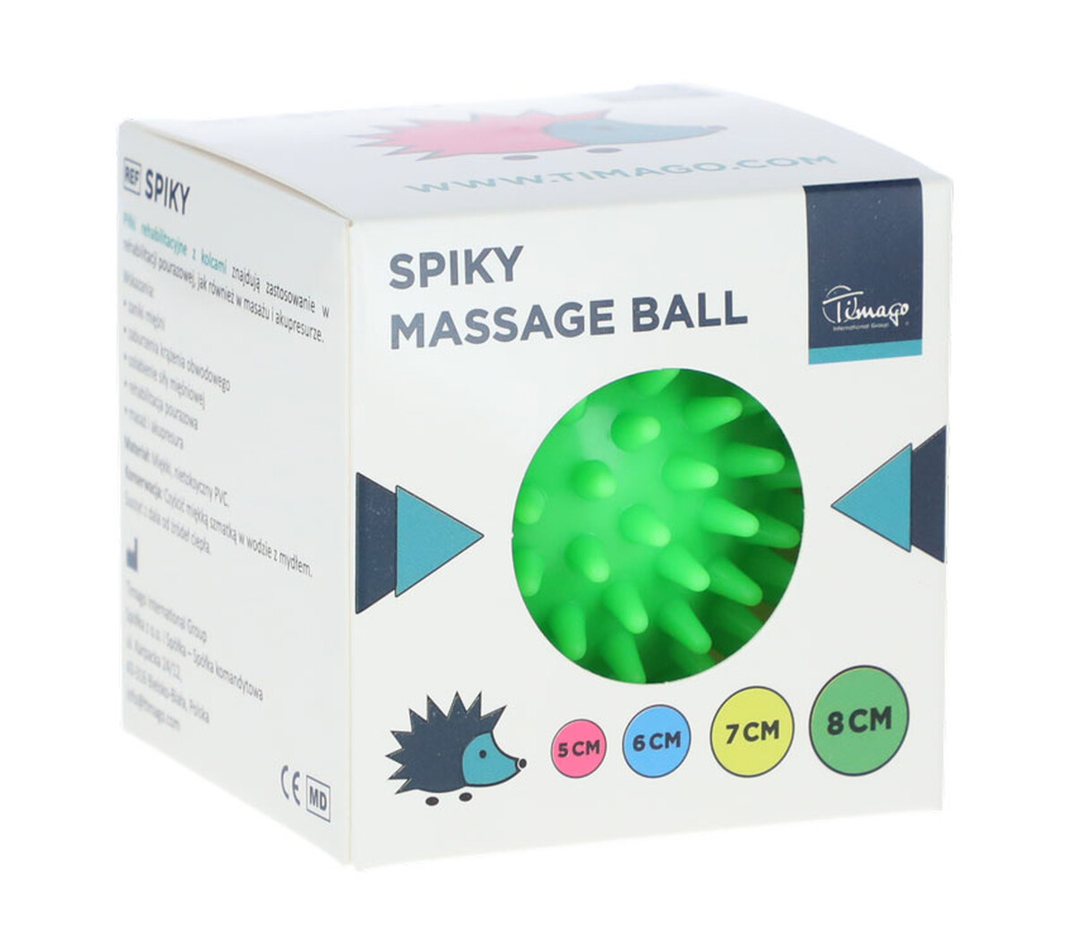 Masážna rehabilitačná loptička s hrotmi účinne stimuluje akupunktúrne body. Prispieva k zlepšeniu prekrvenia, zmierneniu napätia a obnoveniu prirodzenej pružnosti tkanív.